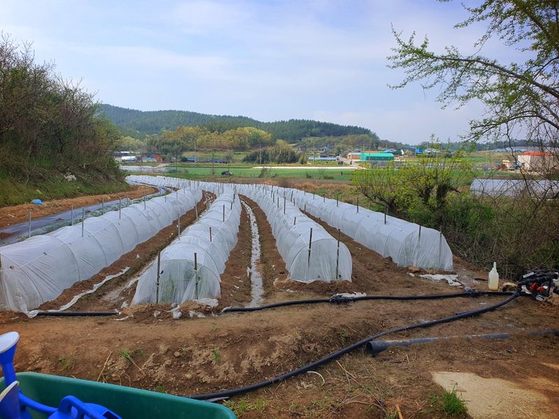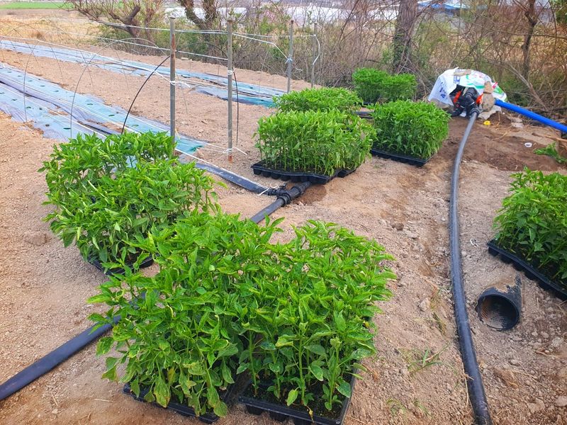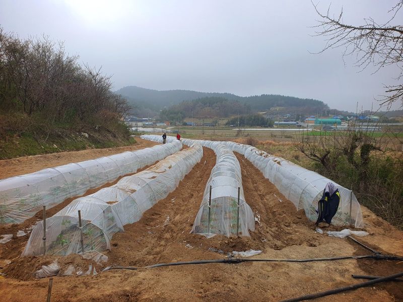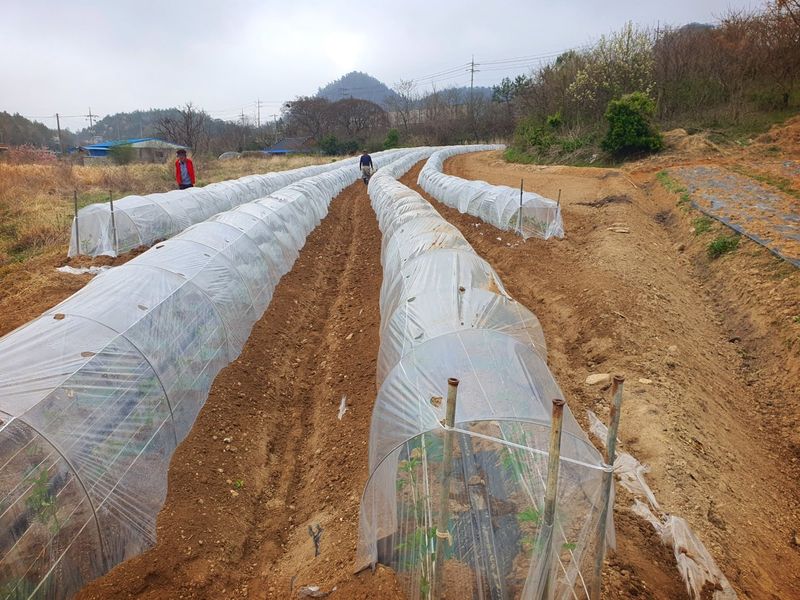 터널재배 고추모종 심기 작업 마무리했습니다