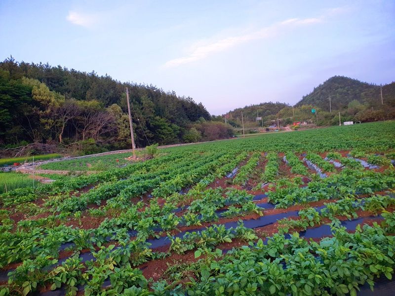 전남 해남군 비닐피복작업과 봄감자 심기가 동시에 진행되며 마무리 되어 가고 있습니다