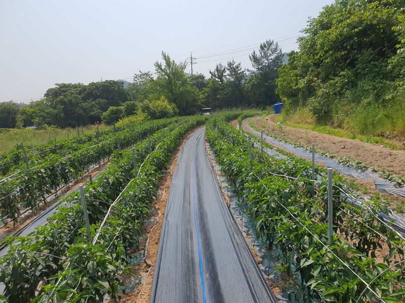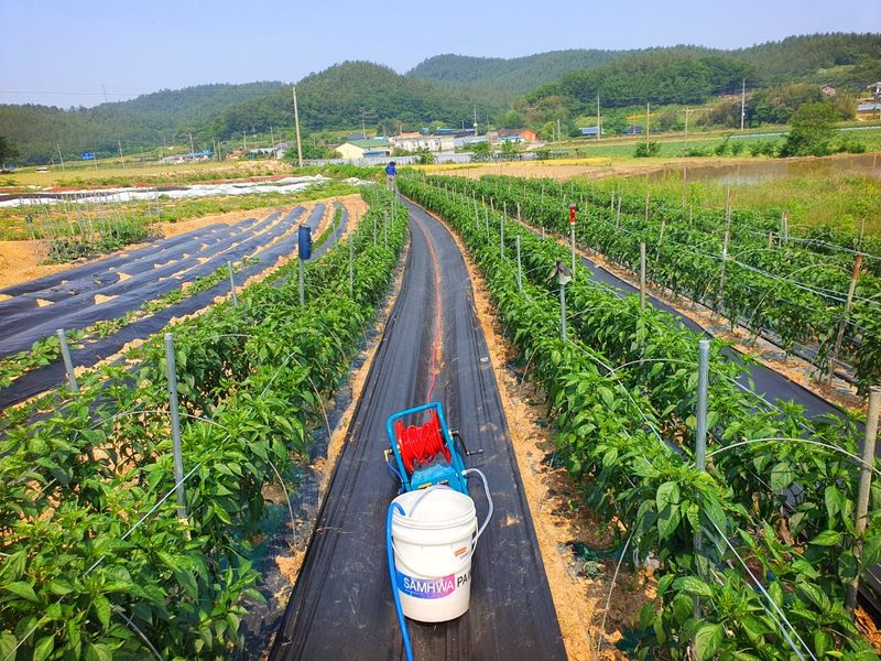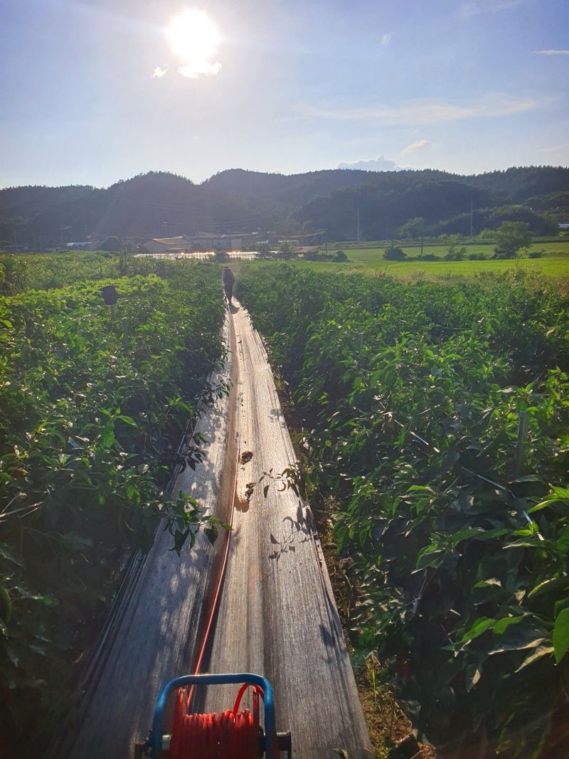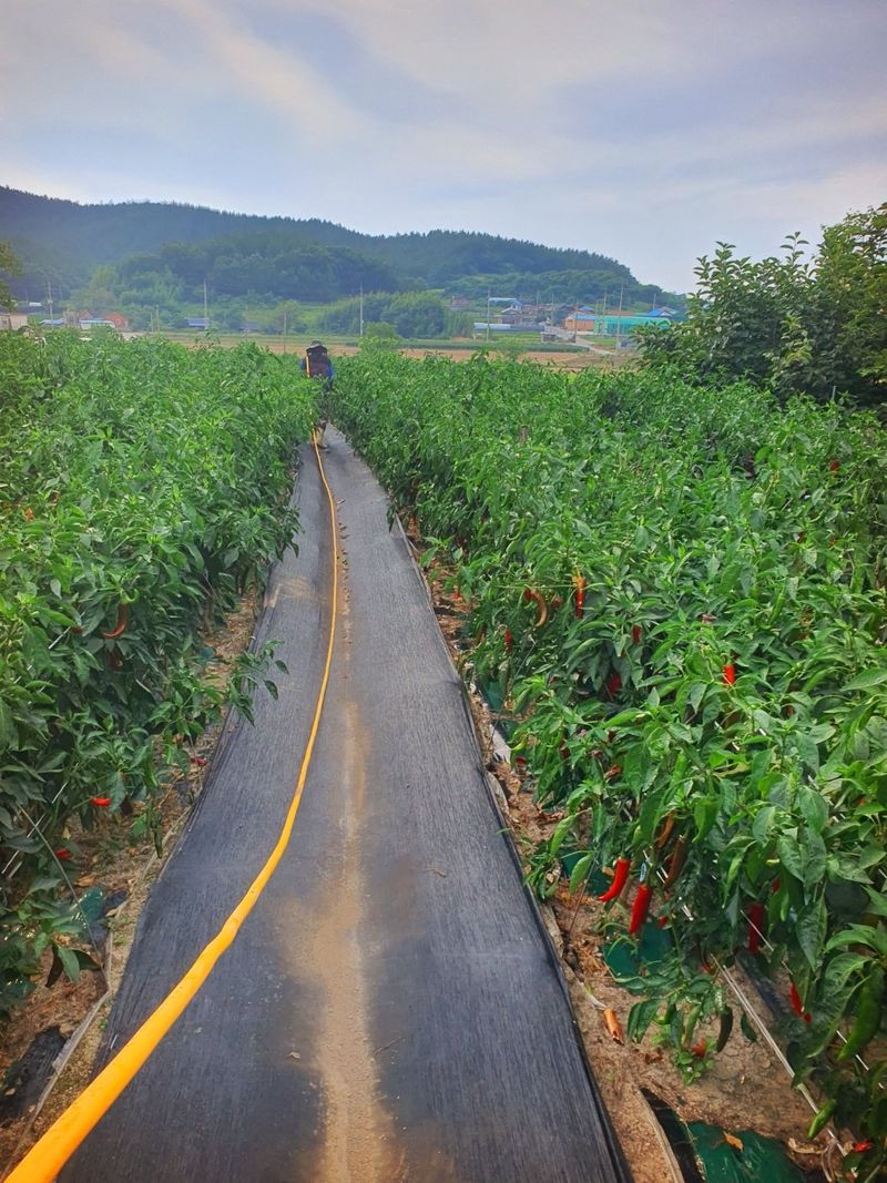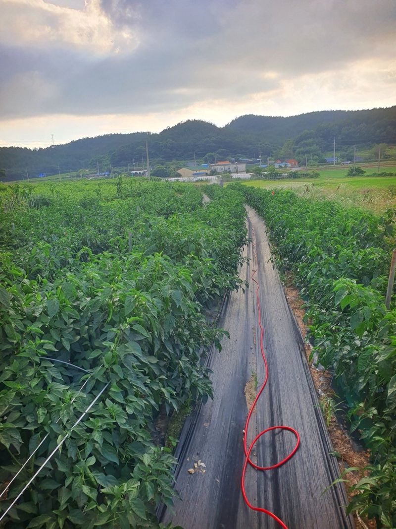 터널식 고추 관수로 충분한 물공급 했습니다