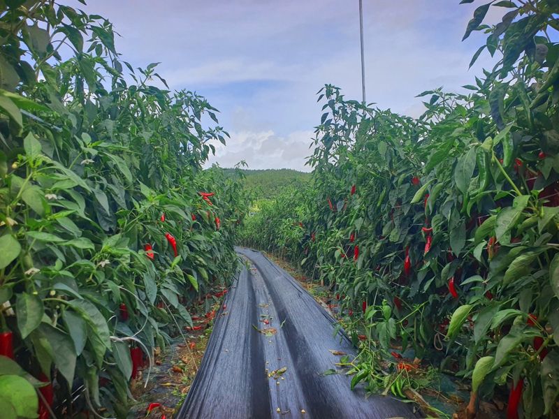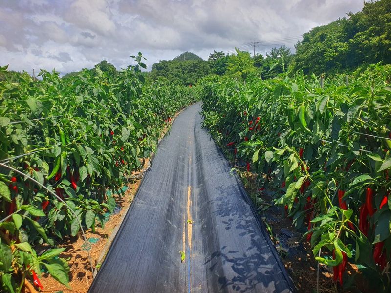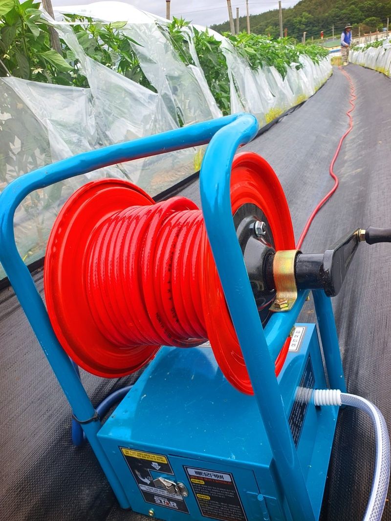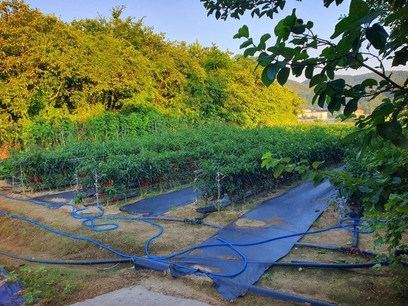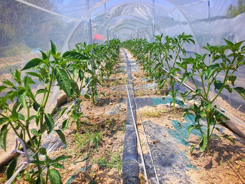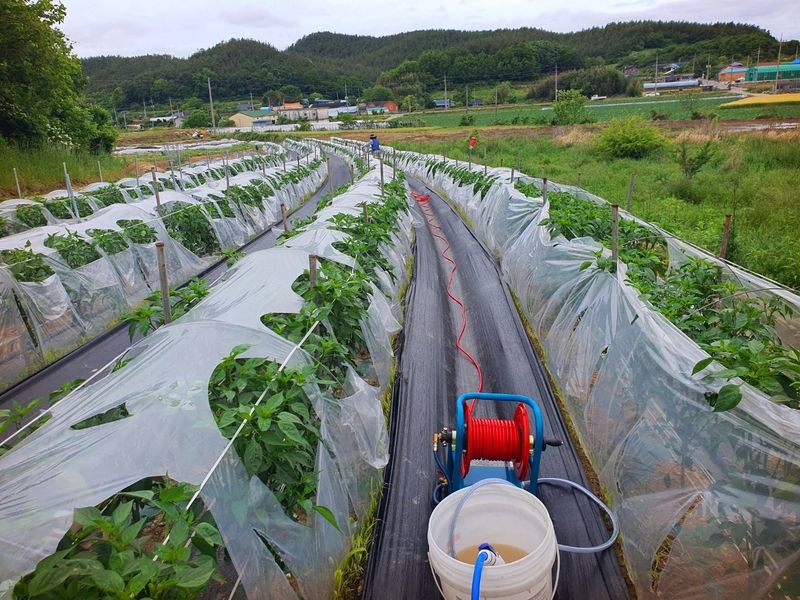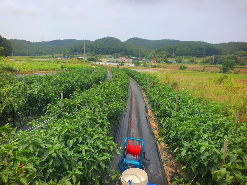 터널식 고추 관수로 충분한 물공급 했습니다