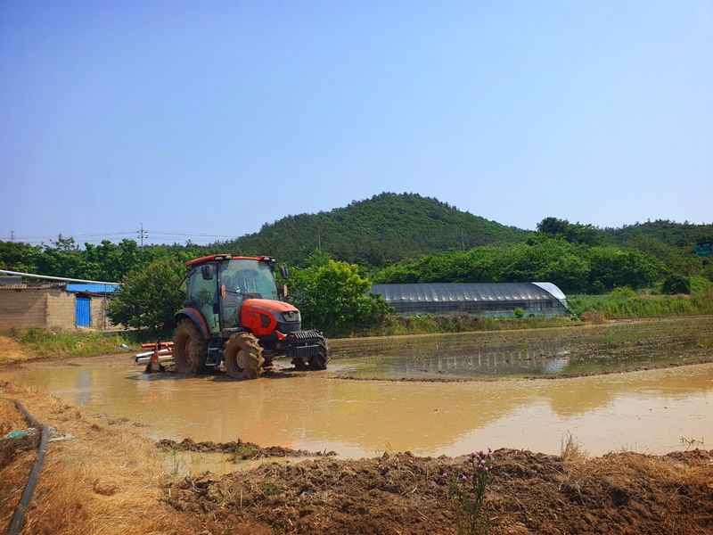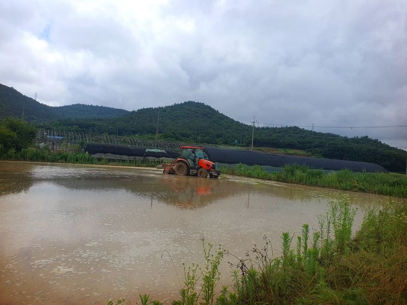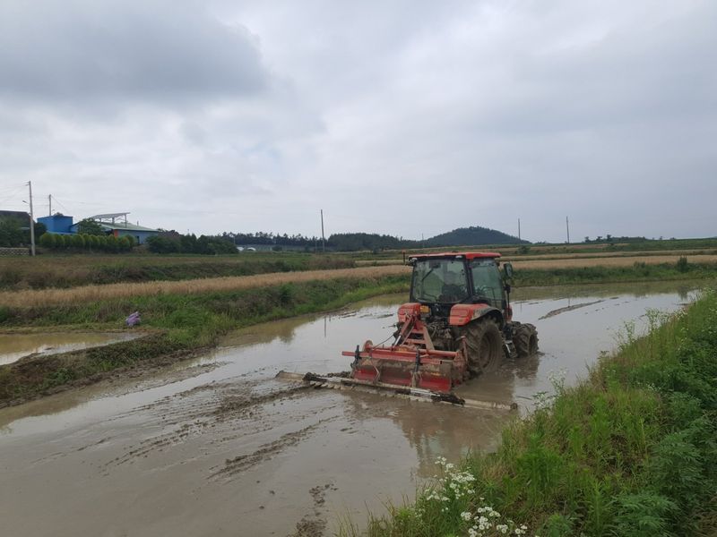 트랙터로 논 로타리 작업했습니다