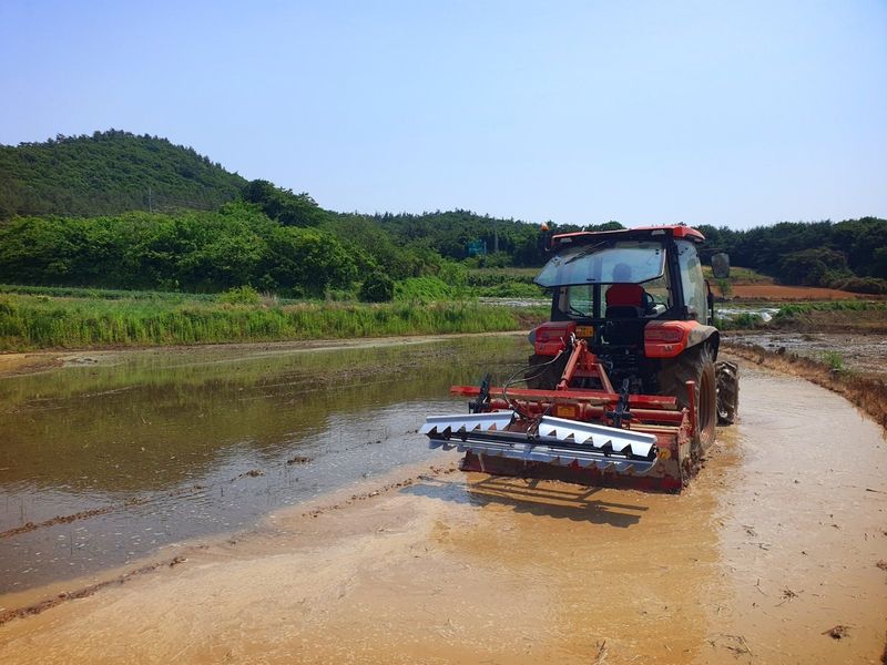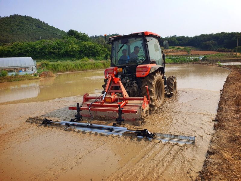 트랙터로 논 로터리 작업했습니다 다시 수평을 잡는 작업을 하고 마지막으로 써래질 작업했습니다