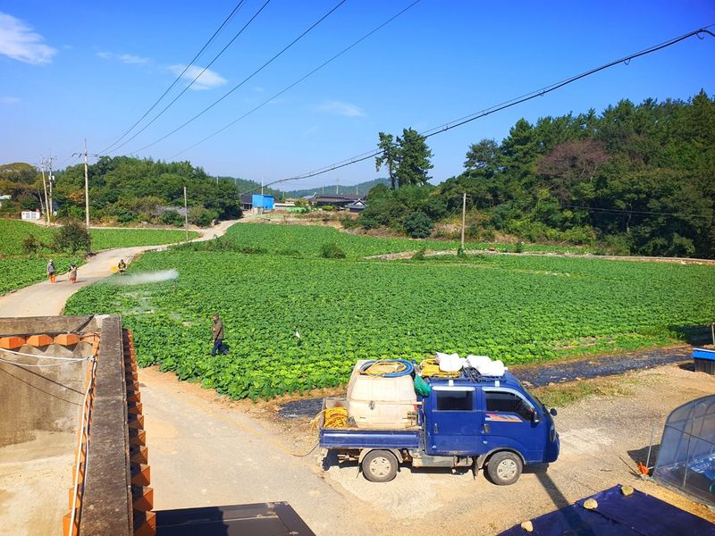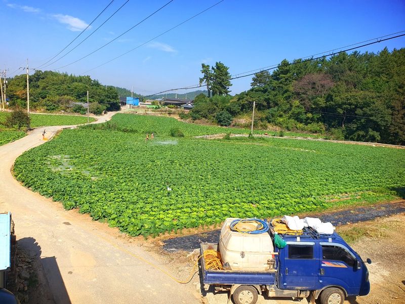 월동배추 준비 만들기 퇴비살포 트럭이 밭을 돌며 발효된 소퇴비 고르게 뿌리고 했습니다 트랙터로 로터리 했습니다