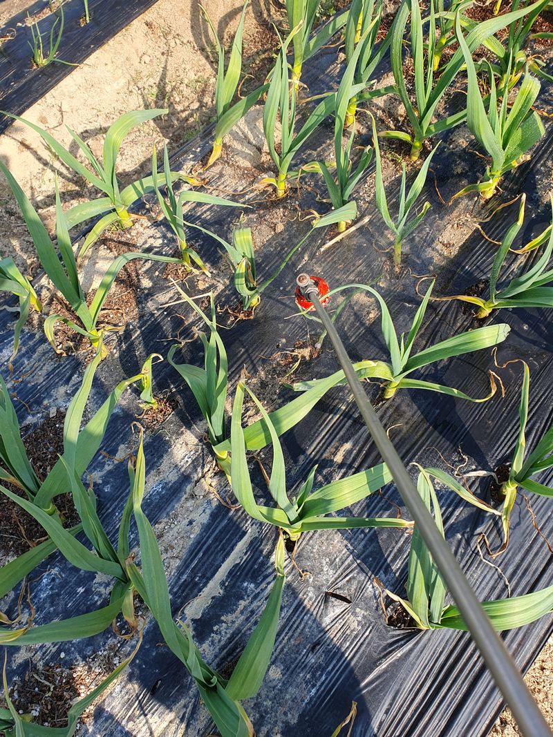 마늘 뿌리에 고자리 피해가 있어서, 어제 마늘밭에 살충제와 살균제를 살포했다.