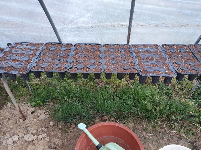 땅콩 모종 작업을 하였다. 작년에 땅위에 놓았다가 쥐들에게 습격을 당해, 하는 수 없이 종묘사에서 사서 심었기에 이번에는 파이프를 이용하여 공중에 띄웠다. 아래쪽에 보이는 것은 부추.