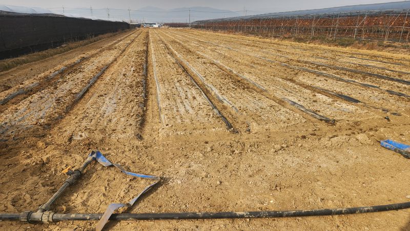 마늘밭 2차 관수 포도밭 황토 객토 퇴비 살포전 쇠스랑 나라싱
