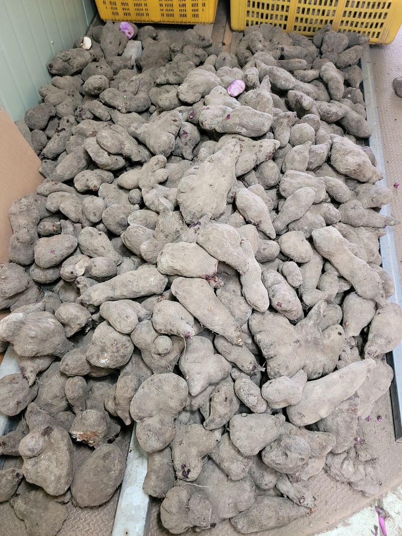 자색마 수확중 입니다 해는 짧고 시간은 모자르고 진짜 힘든 작업이네요 하나하나 제품에 상처날까봐 호미로 수작업 중입니다