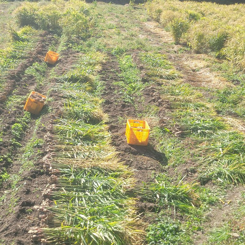오늘 생강200kg 수확 자색마 줄기 제거후 수확중입니다 갑자기 추워지는 날씨때문에 열심히 농사에 전념중입니다