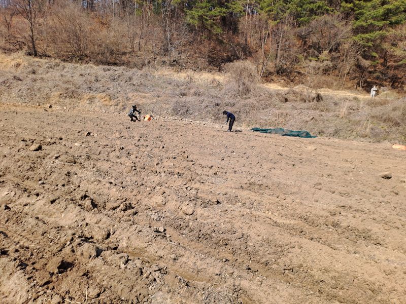 팔방농장600평에 먹고사리식재완료함, 내일은 임야쪽에 고사리 남은것 심고, 도라지씨 파종예정.