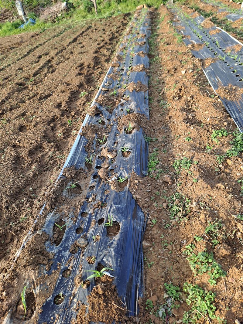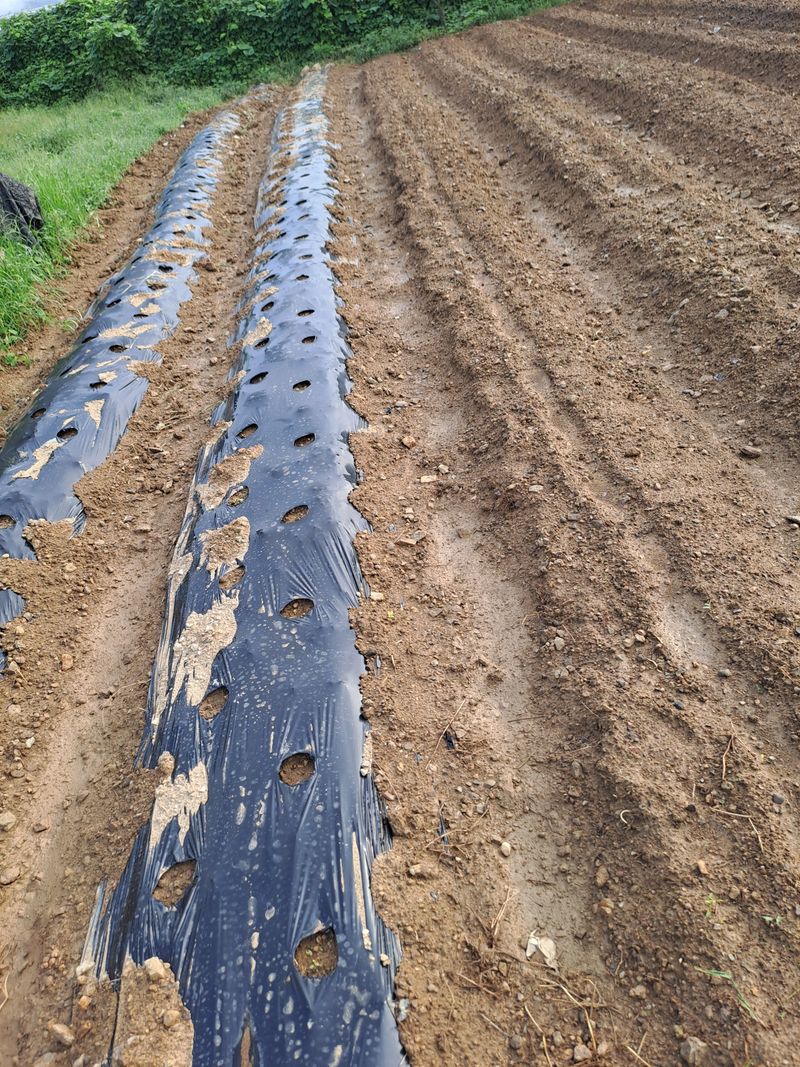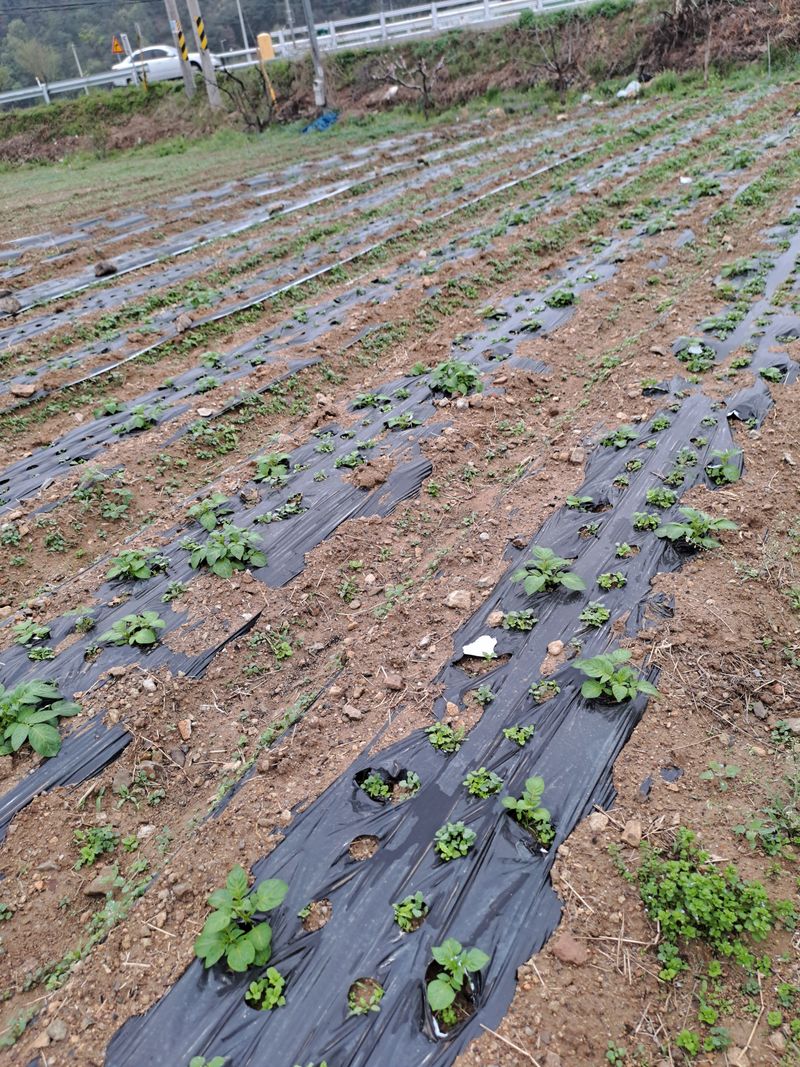 감자싹 올라오게 비닐 구멍 넓혀줌.