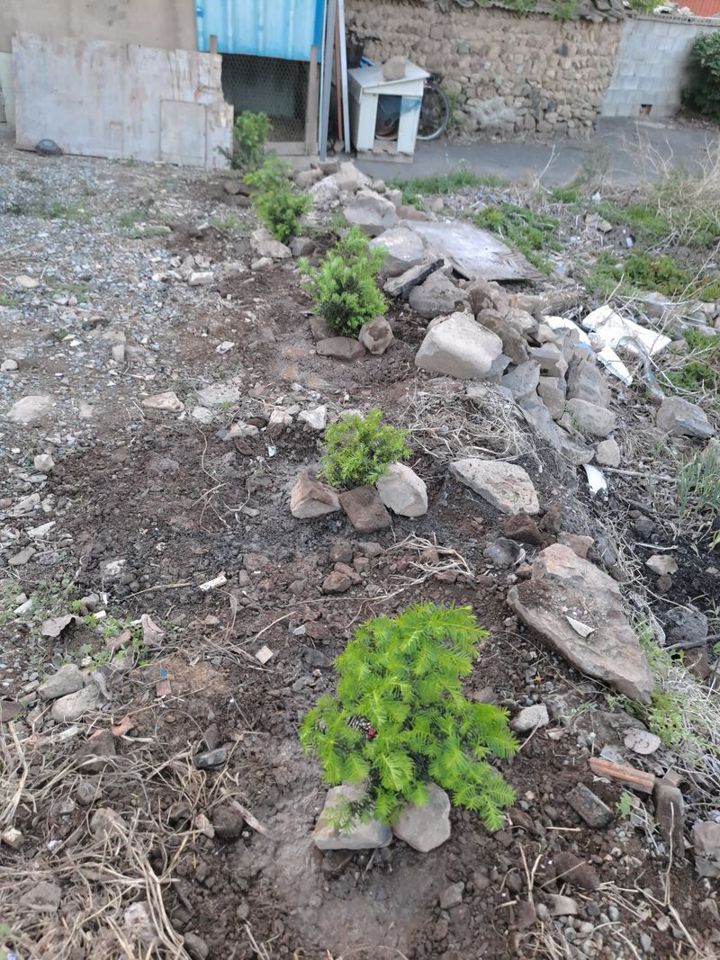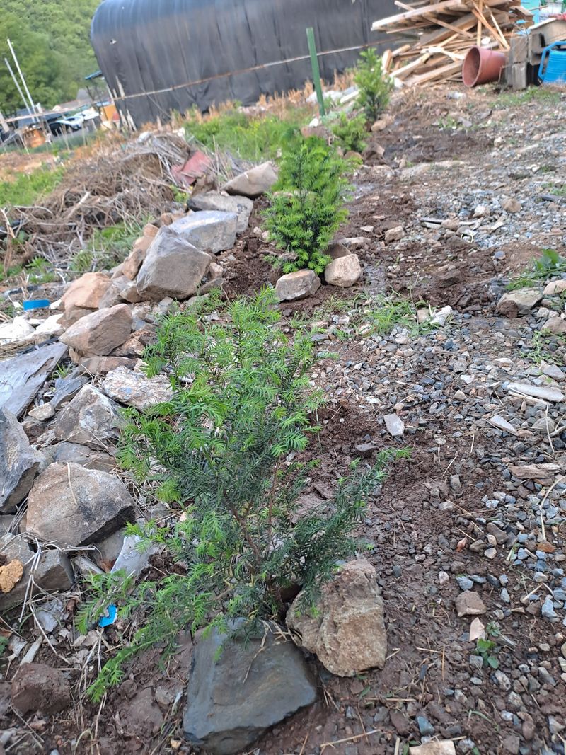 주차장에 주목 5그루심음. 팔방농장 고사리밭에 잡초제거 작업하고, 고사리 수확함.