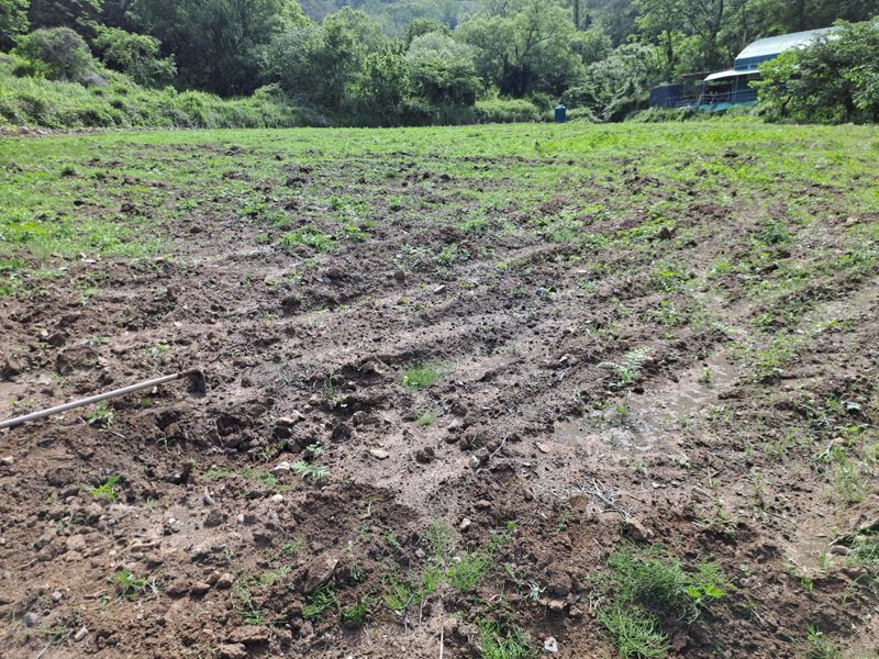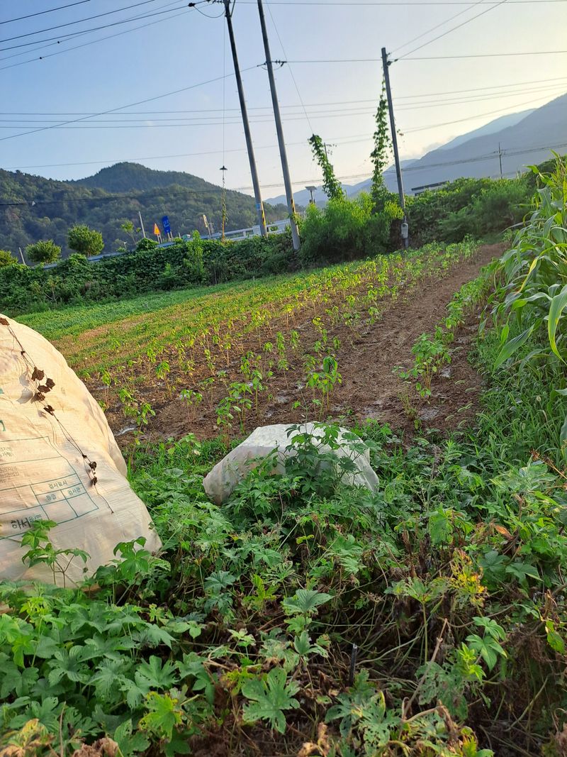 감자밭 잡초제거 및 북주기작업하고, 옥수수밭 제초작업 해줌. 인산농장에 밭에 풀이 너무 많아 로터리쳐줌. 콩 싹난 것 이식해줌.