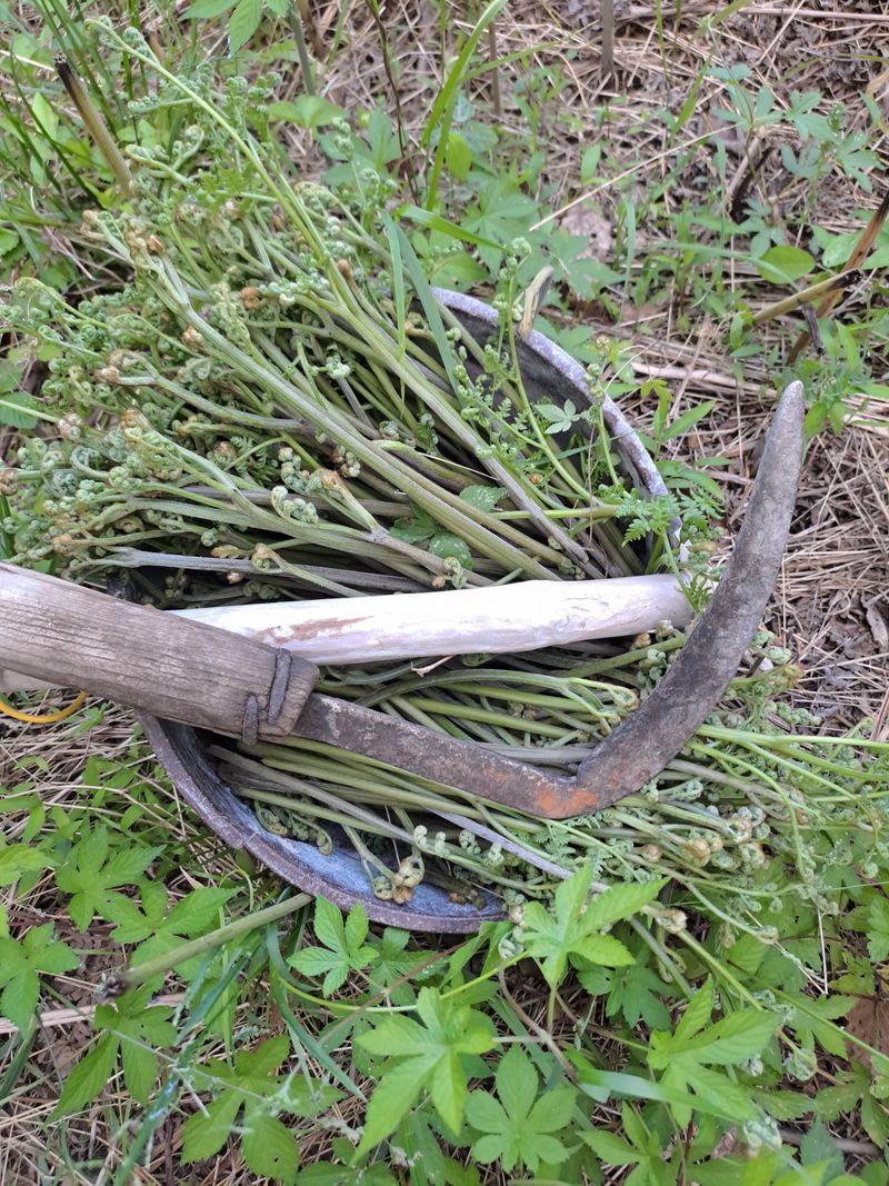 고사리밭 잡초속에 묻힌 고사리 구하기 및 제초작업함.