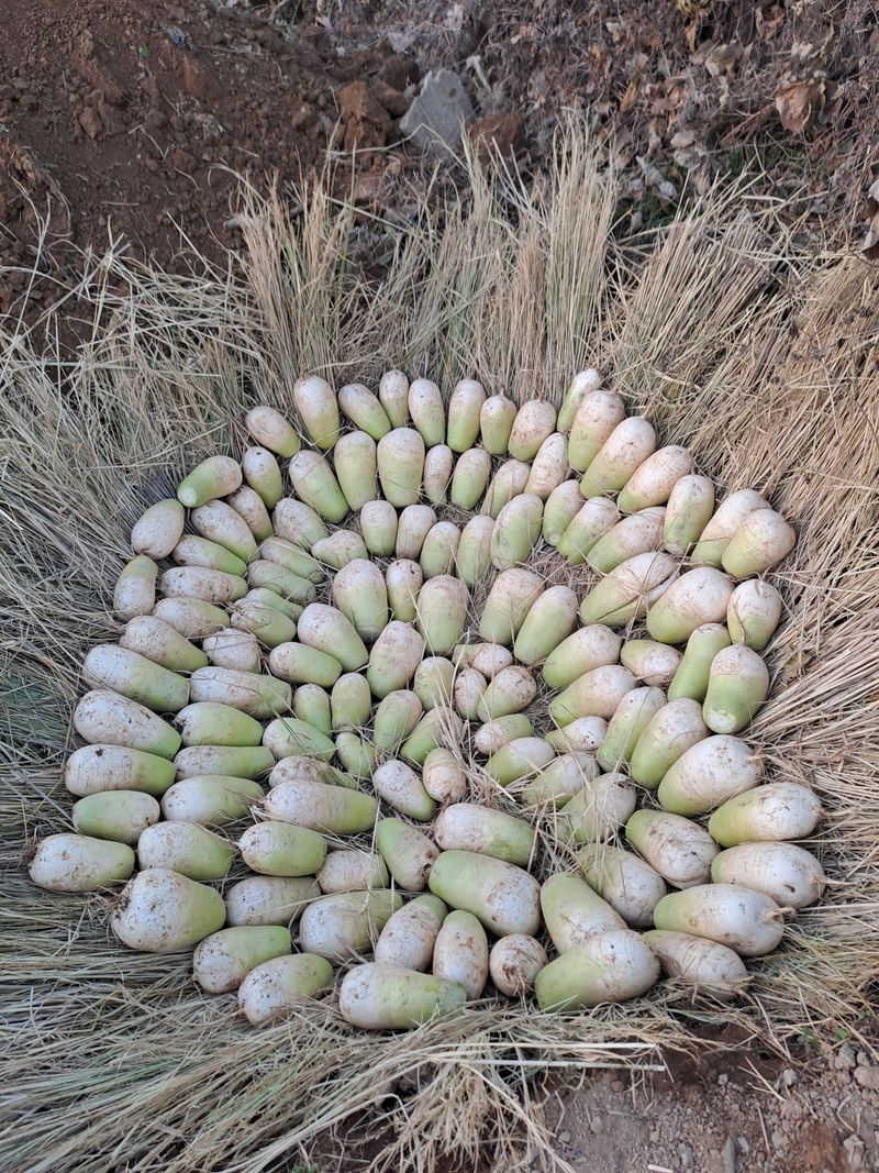 무우 수확하고 땅에 묻어둠. 당근도 수확함.