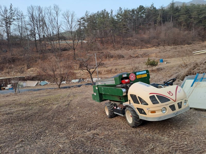 인산농장에 고토석회 4포살포하고, 천도복숭아밭에 오전에 제초작업함. 오후에 비옴.