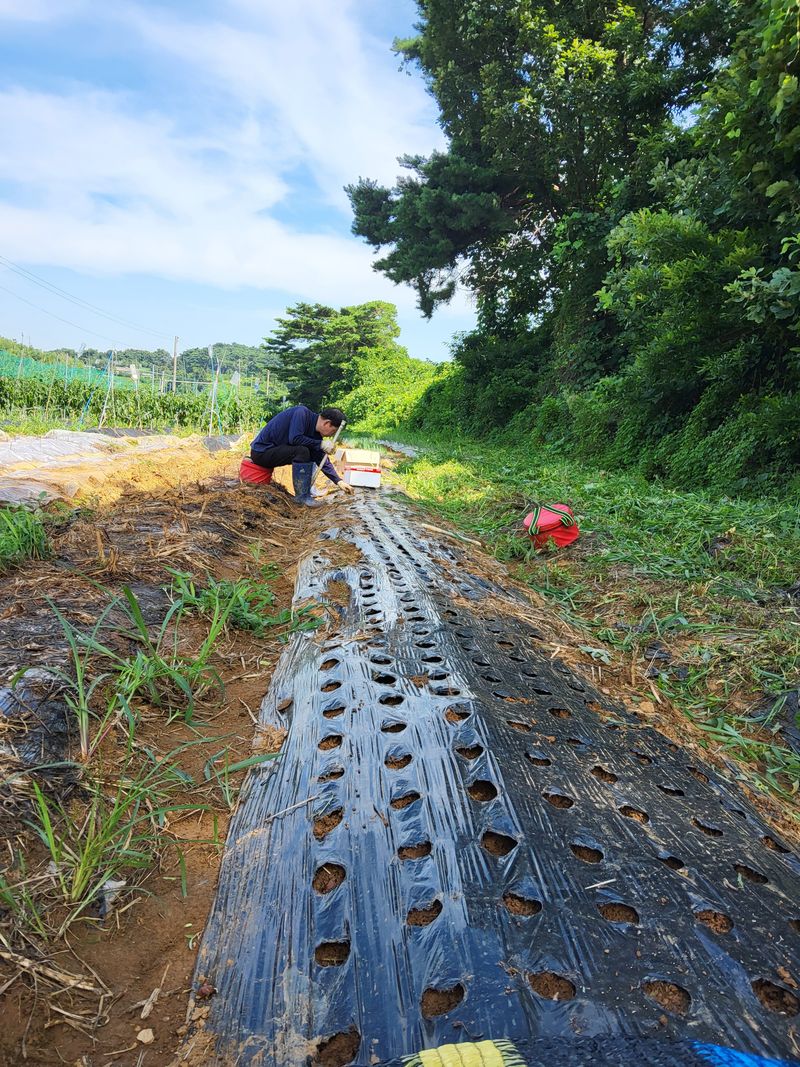 고추 한접시 서리태 콩 심었습니다 터밭 흑콩 반되 심고 쪽파 10키로 심고 고구마 26단 심었네요 방울 토마토 백주 심었네요 가지5주 수박5주 참외 5주 호박5주 심었네요