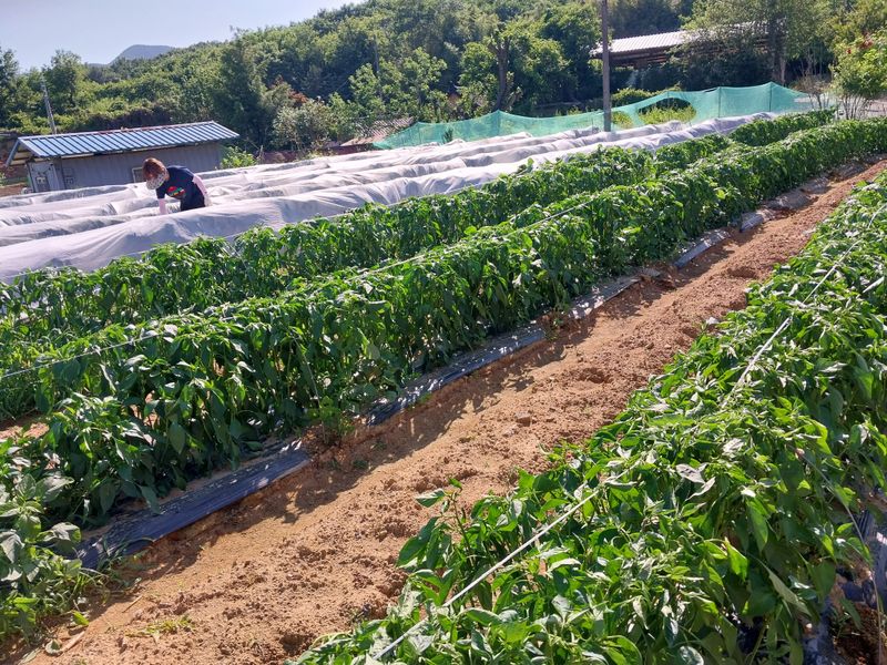 4월23일 고추 심고 터널 오늘 6월4일 부직포 것고 마산 딸 가계 쉬는날 도움 고추 상태 좋음
