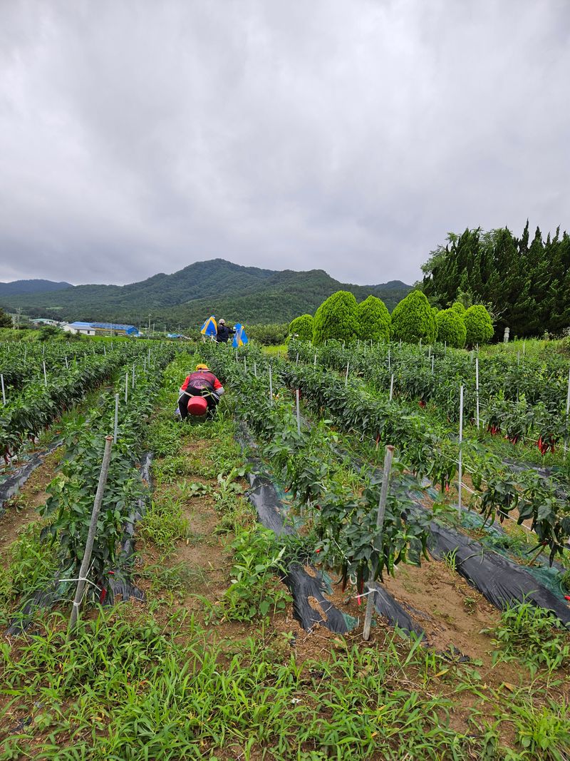 외국인 5명 하고 고추따고 고추두럭에 풀 뽑고 약도 함 25포대 땀