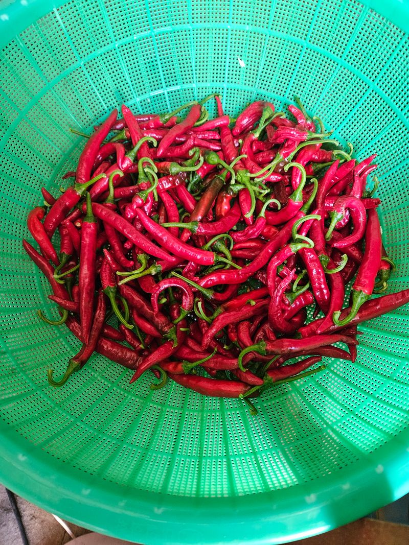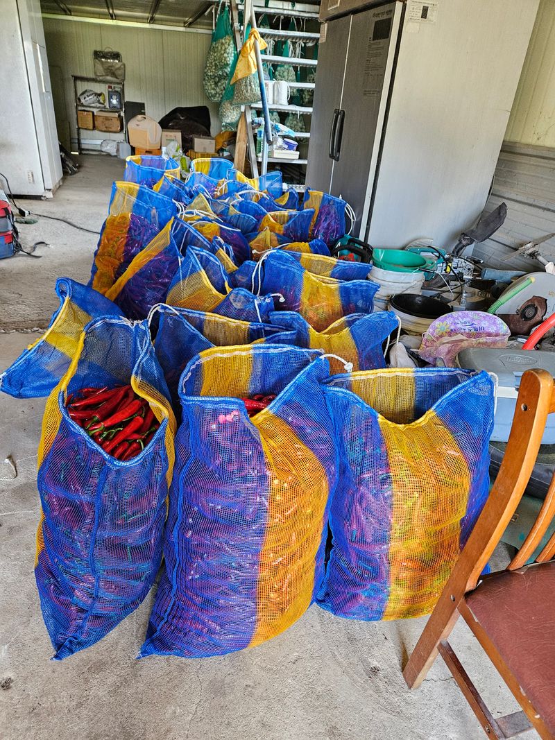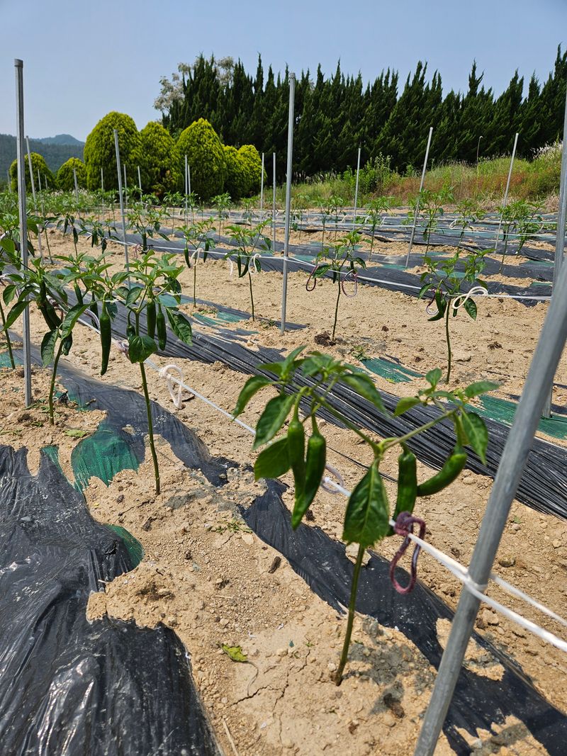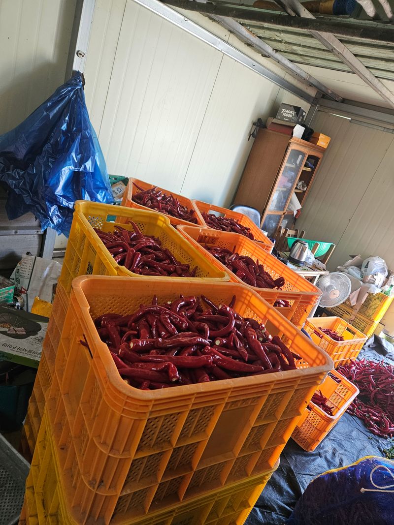 고추따기 2차로 시작함 오늘은 11시 까지 따고 오후에는 고추꼭지 다 따고 통고추 20근 주문들어오는것 선별작업해서 따로 세척하고 건조기에 넣어 말리고 있어요 고추 약도했어요 사진은 없어요