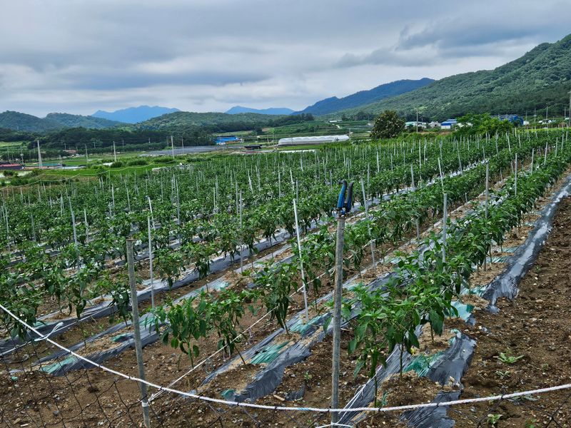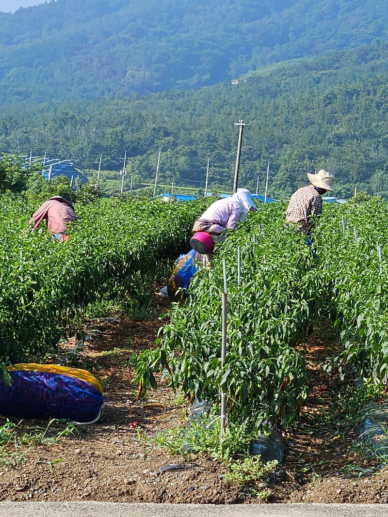 세물고추 1차 따고 새벽5시30분에 나가서 9시30분 까지 따고 오후에 4시30분에 나가서 7시 넘게 고추땀 내일은 외국인 인력 세사람 하고 고추 땁니다