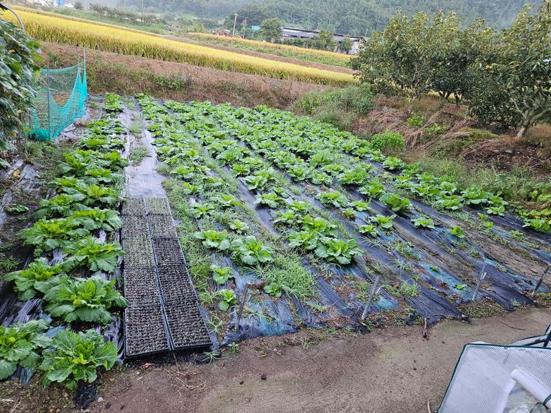 비가너무많이와서 배추가 좀 시들해진 기분이 들어요