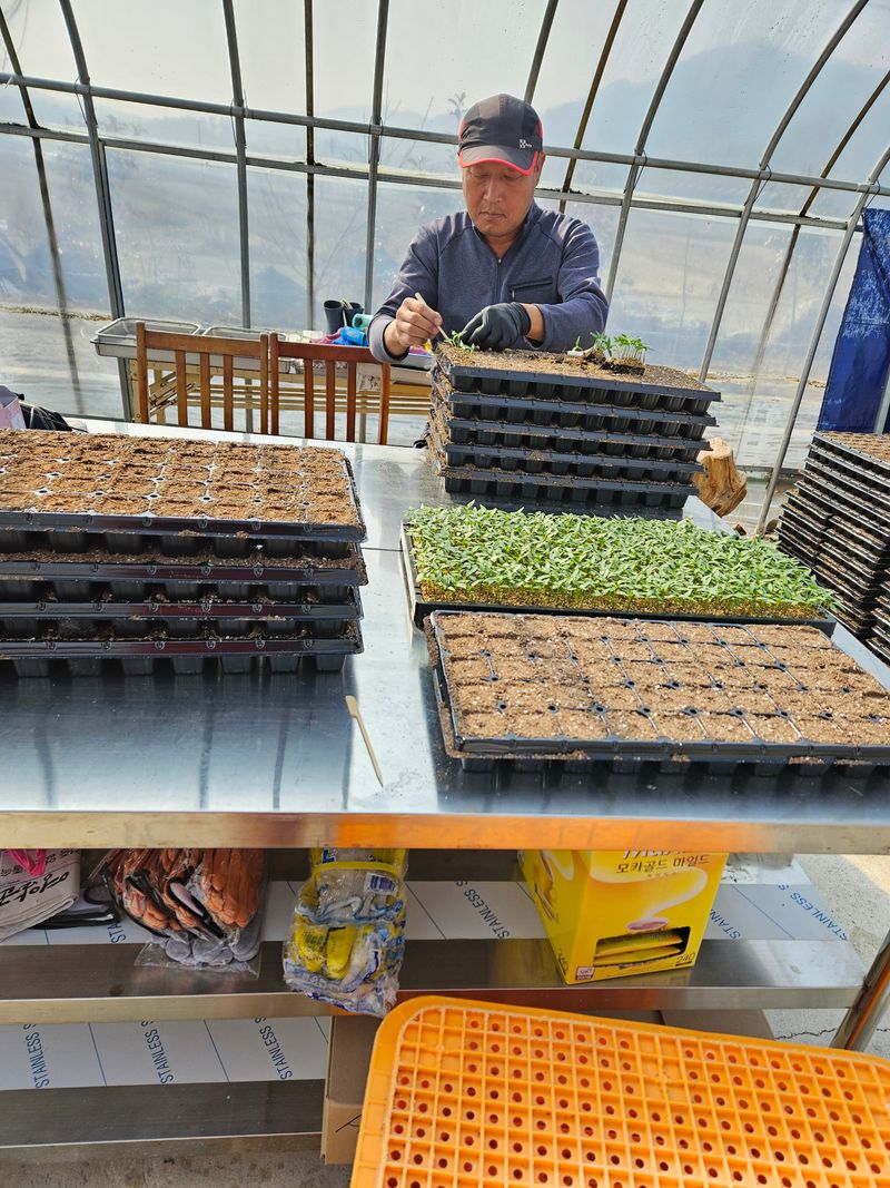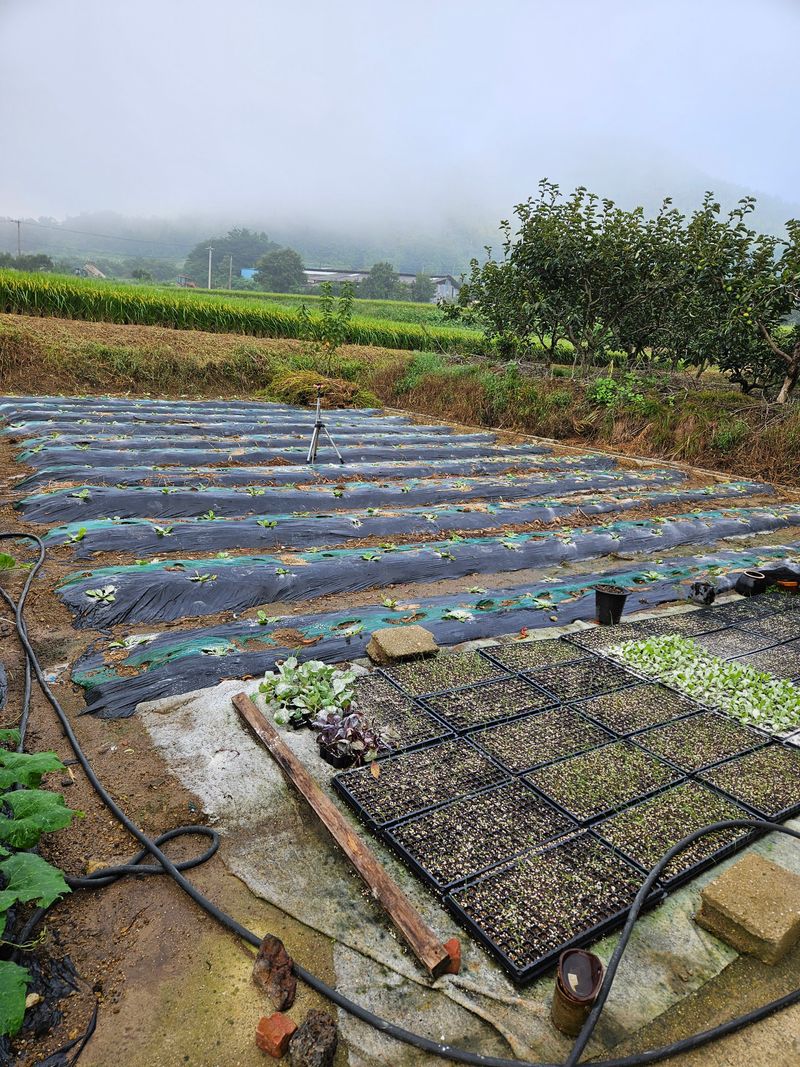 오늘 김장배추 모종 부음 3판 315개 부음 사진은 두판 인데 몇분후에 한판더 모종 부음