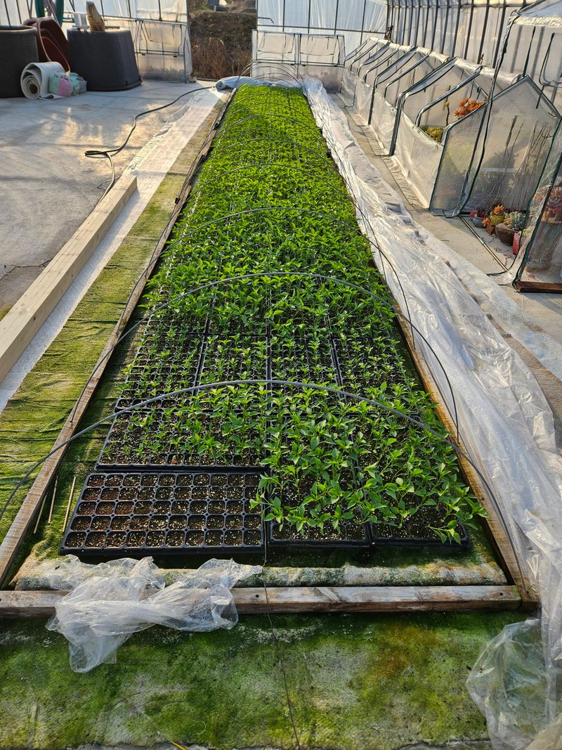 고추모종 키울준비중 열선도 깔고 고추모종 포토에 이식함