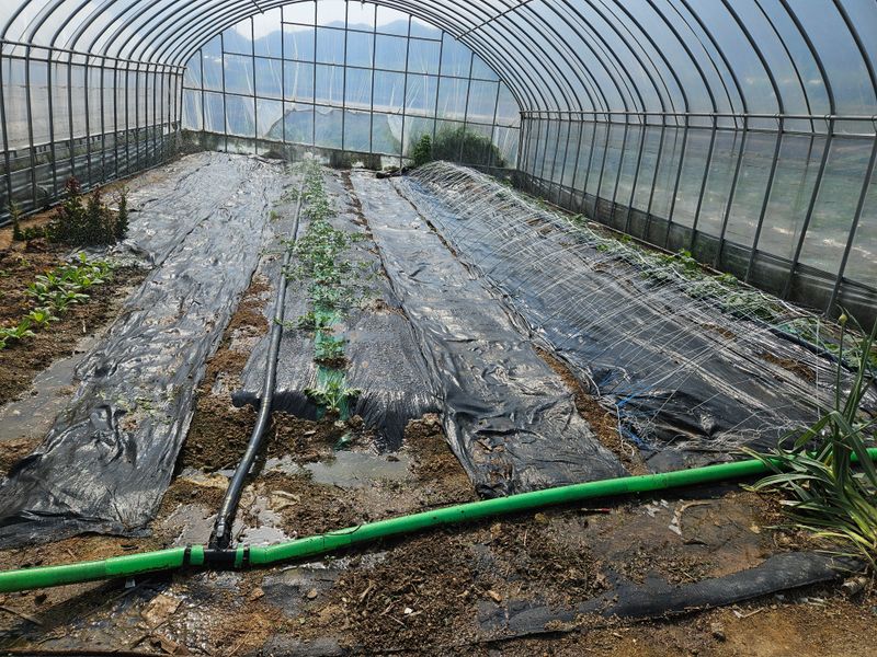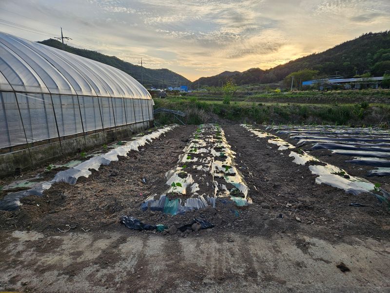 고추밭 두럭비닐 시움 토요일에 시움 집안텃밭에도 비닐시움 하우스 속도 정리해줌 하우스속에는 오이,참외,수박등등,,,
