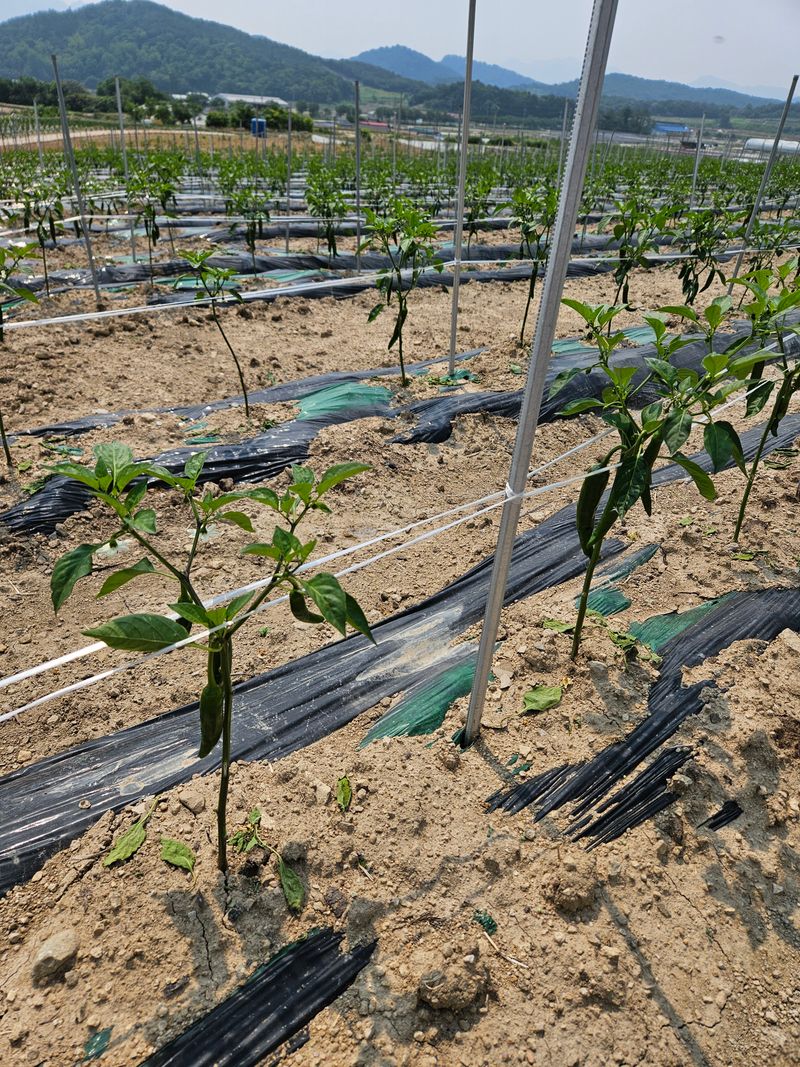 고추땜빵해줌 바람이 불어서 끊어진것이 좀 나와서 장 에서 고추모사다가 다시 정식함