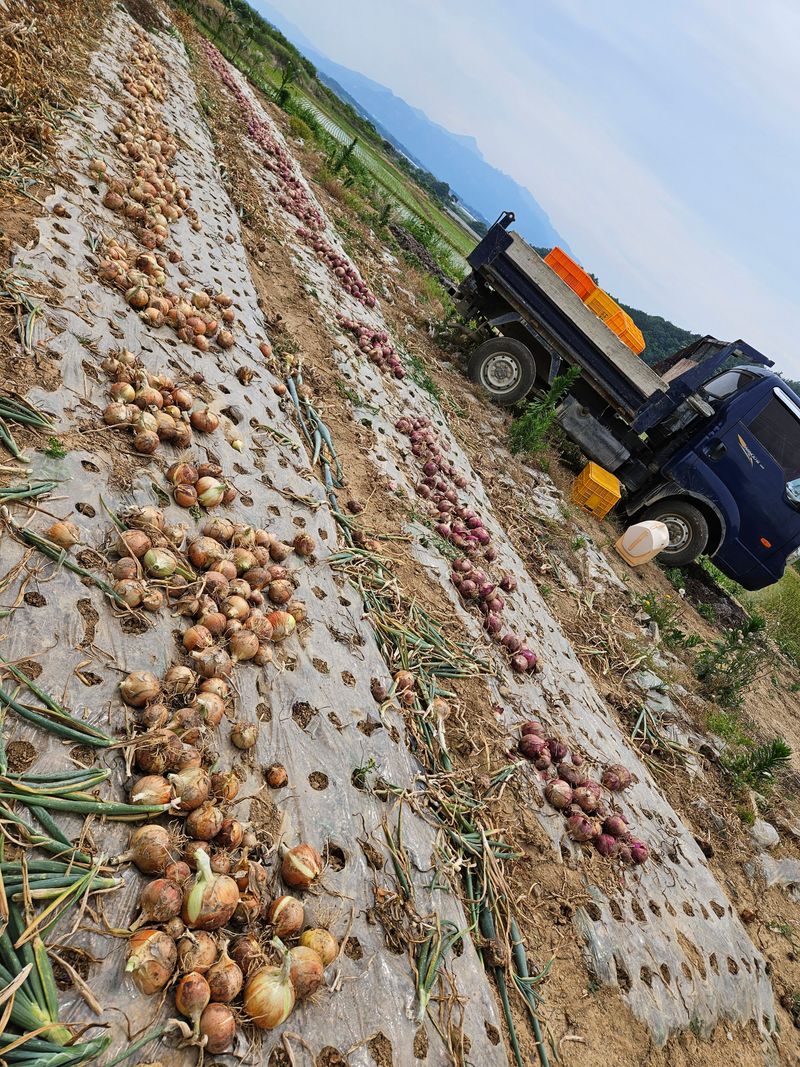 오늘 마늘밭에서 하루종일 마늘뽑고 자르고 콘테이너바구니에 담아서 하우스속에 널어놓음 양파도 뽑고 자르고 창고에 널어놓음