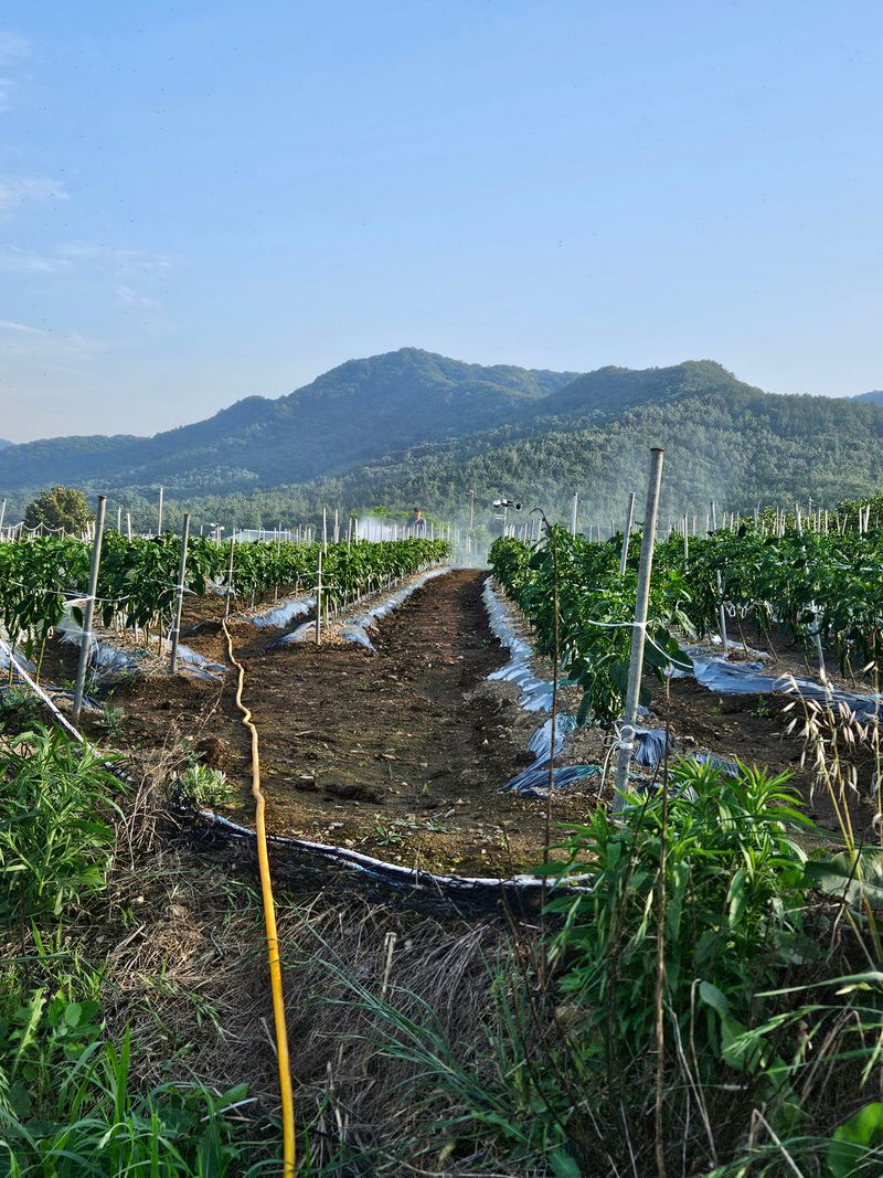 고추밭에 새벽부터 방제 했어요 순서대로 사진찍어서 올렸어요 다음주부터는 첫물 고추따야겠네요