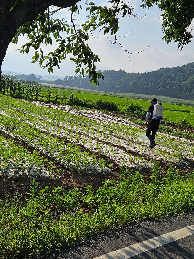 제초제 해줌 사진은 없어요 신랑이 바람없는날 새벽일찍 가서 제초제 해줌 같이,못감