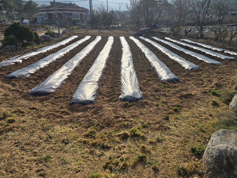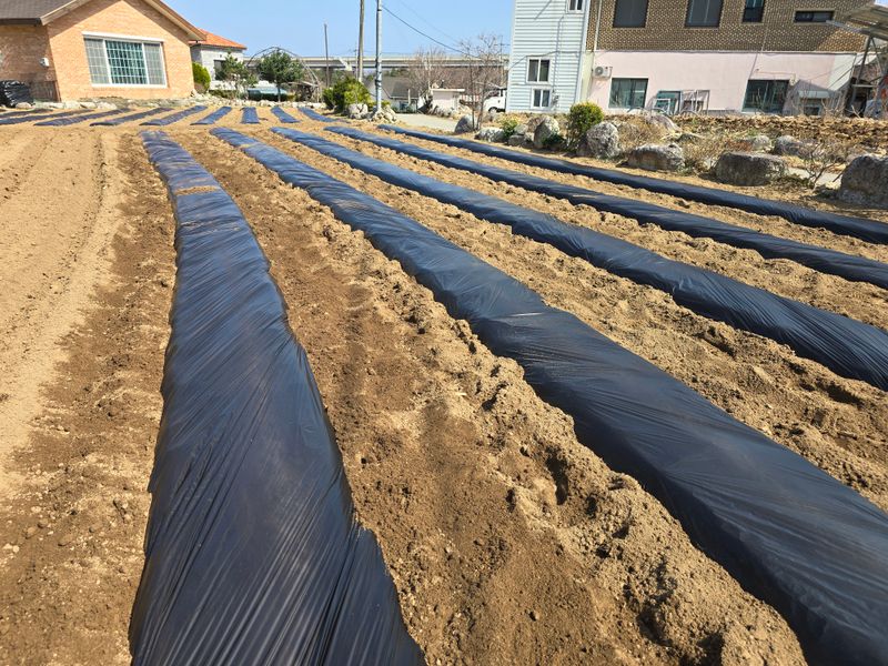 고추심을 곳과 감자심을 밭 로터리치고 두둑만들고 비닐멀칭 완료했습니다 ^^