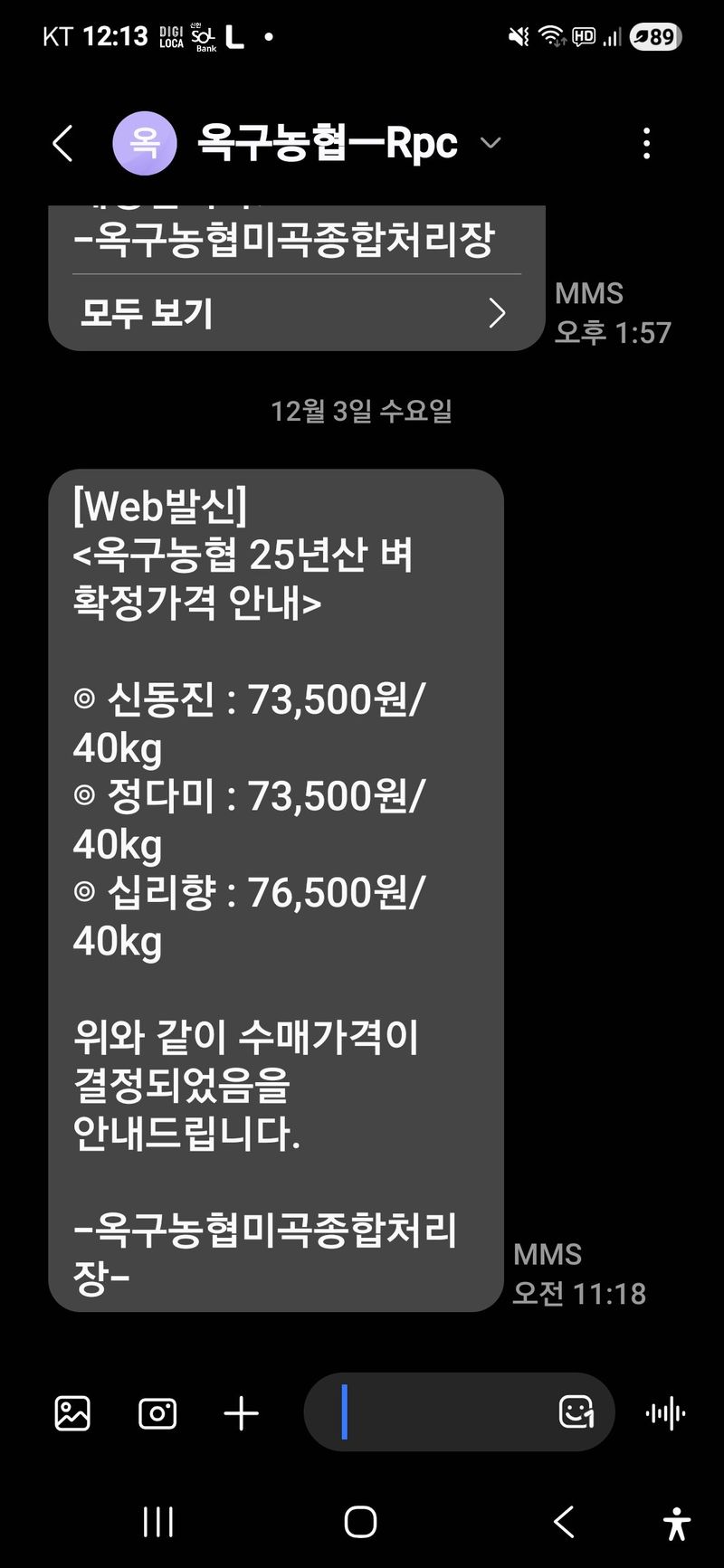 벼 수매완료 ㅇ옥구농협RPC 17시 ㅇ신동진 3,222kg