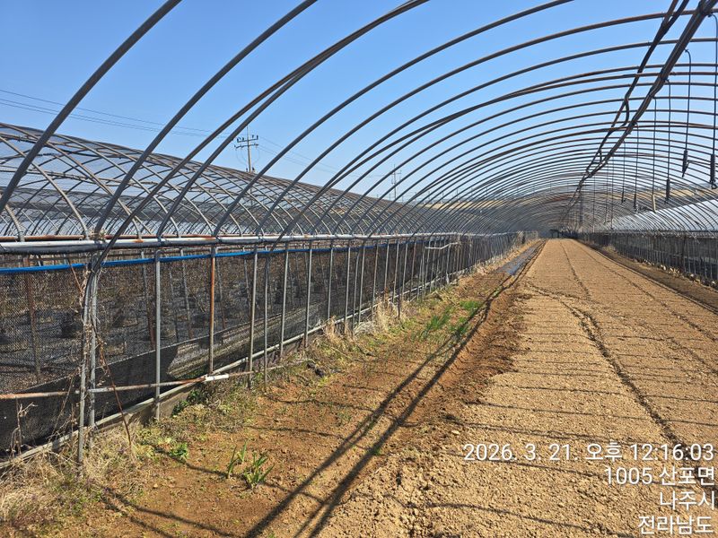 화분관리 4월6일 나주에 우박이 쏟아짐 꽃눈이 피려다가 우박피해가 있음 피해는 꽃이 피어봐야 알수 있을것 같음 제초메트 작업 농장 앞