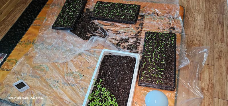 시금치 씨 뿌린것이 이제사 싹이나오내요. 봄에 받아둔 고들배기씨 조금뿌려 봤어요.씨뿌린곳에 살충제 뿌렸어요. 씨뿌리고 분수호수깔고 물주기 했어요.