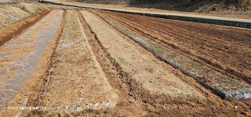모래부터 영하권으로 떨어진다고해서 마늘주아 심은골 비닐 쒸우기 했어요.