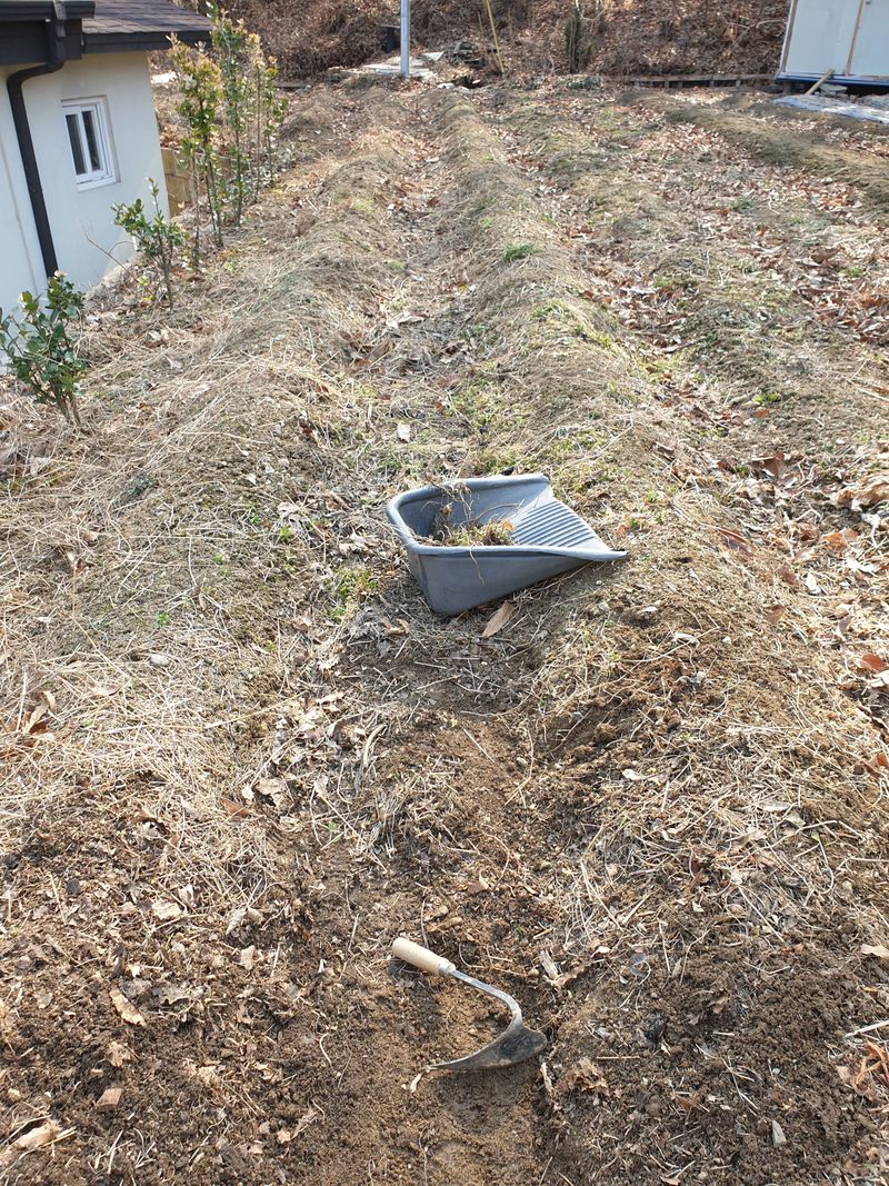 백도라지 씨앗을 파종했어요 삽으로 두둑을 만들어 거름을 섞어서 흙을 고르고, 그 위에 살살 뿌리고 얼기설기 긁어주었어요 제대로 싹을 틔웠으면 좋겠네요