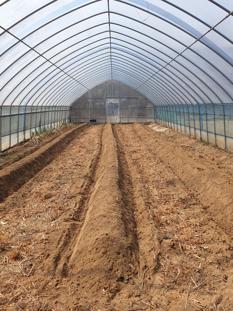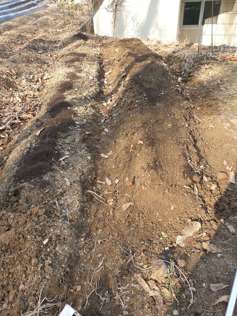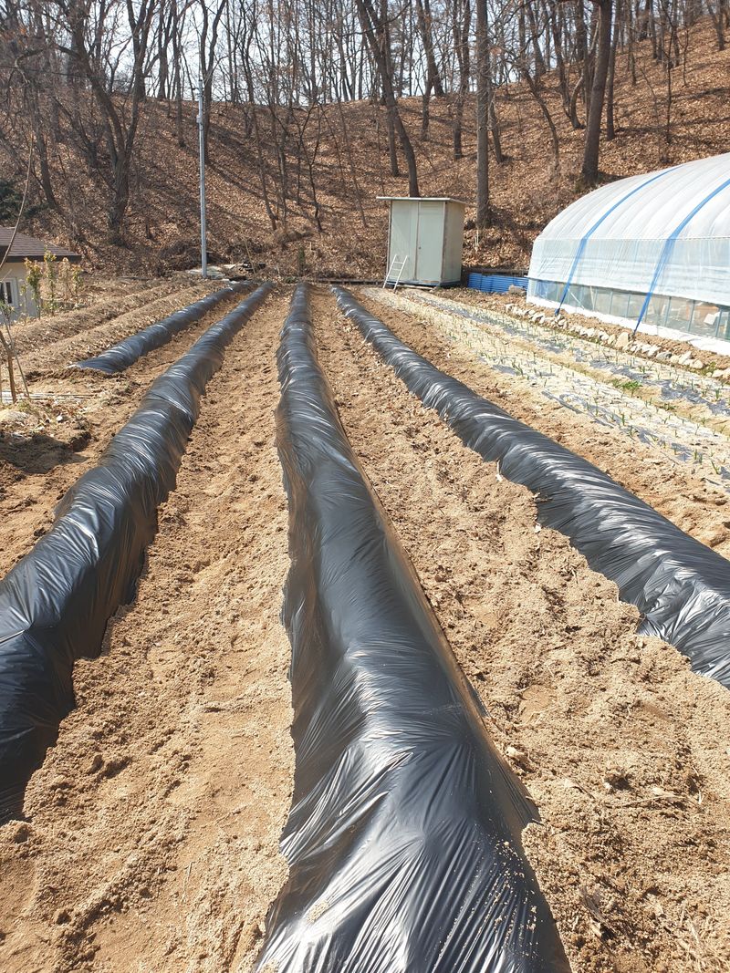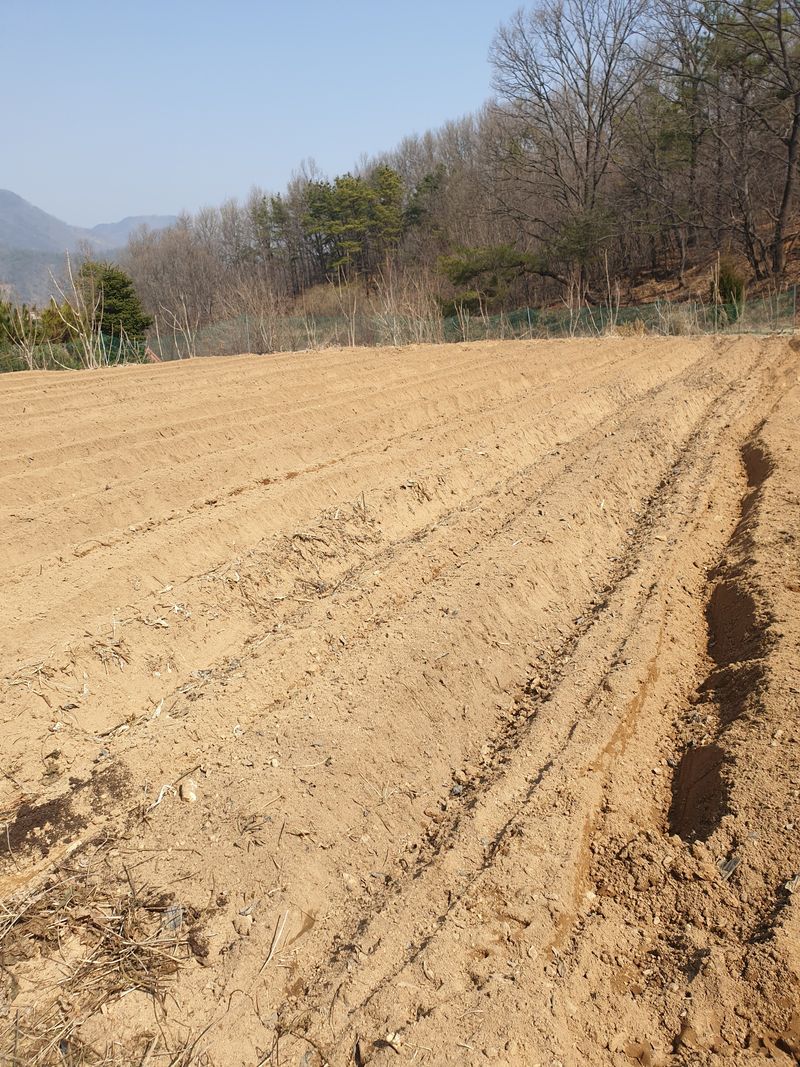 가축분퇴비 및 토양살충제 살포하고 밭갈이하고 두둑 성형했습니다.