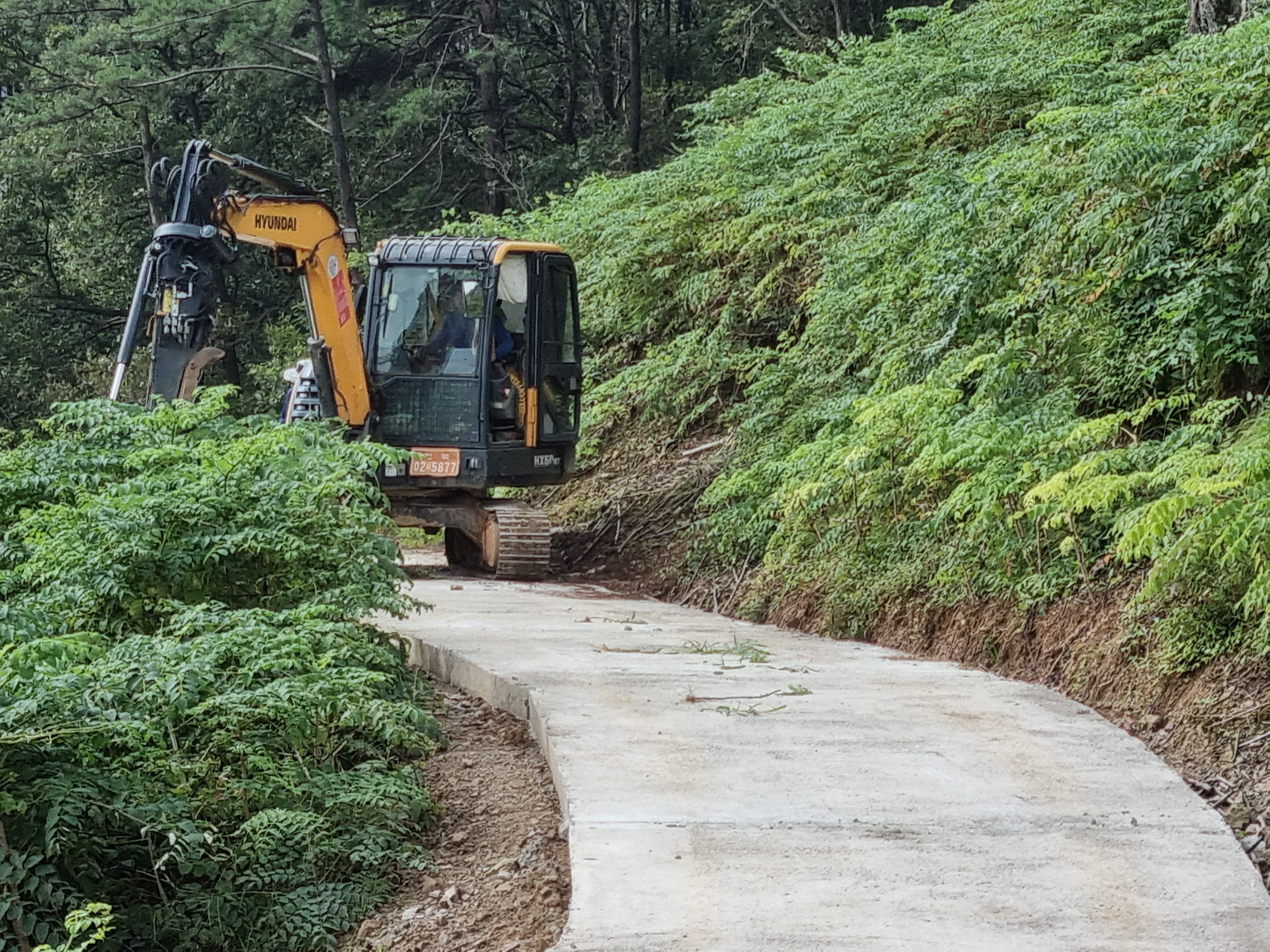 도고리 두릅밭 임도포장 포크레인으로 길고르기