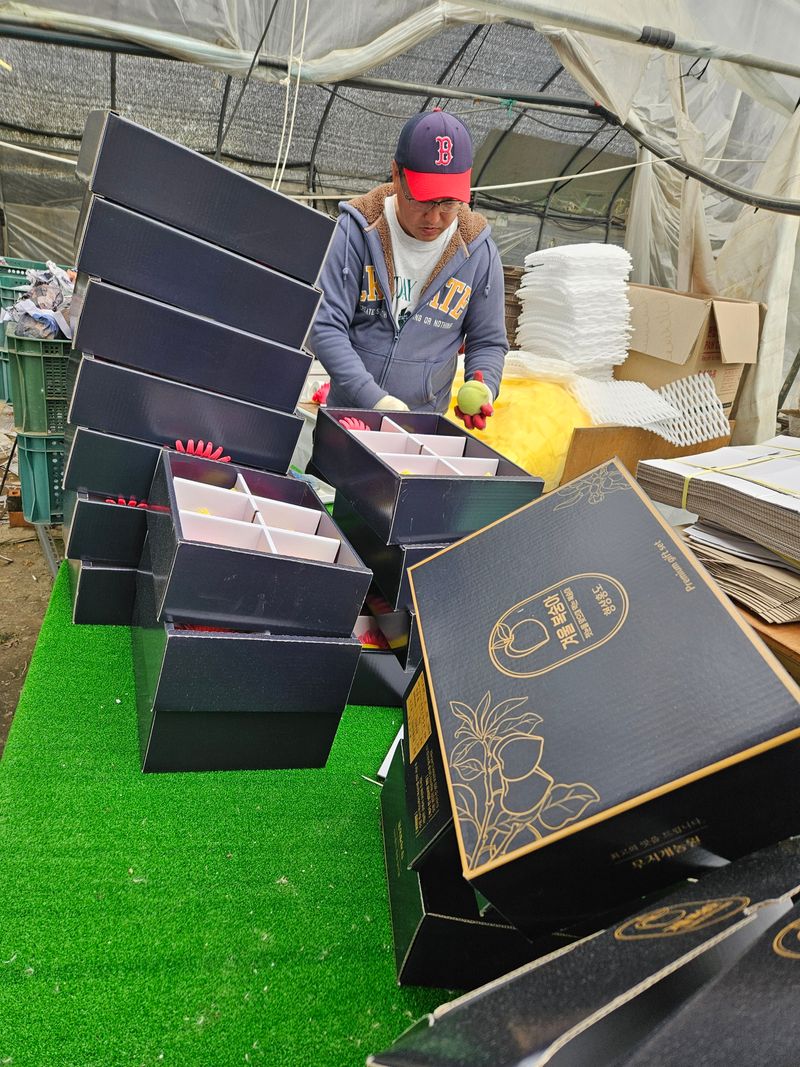 겨울복숭아 형상홍도 수확, 택배작업