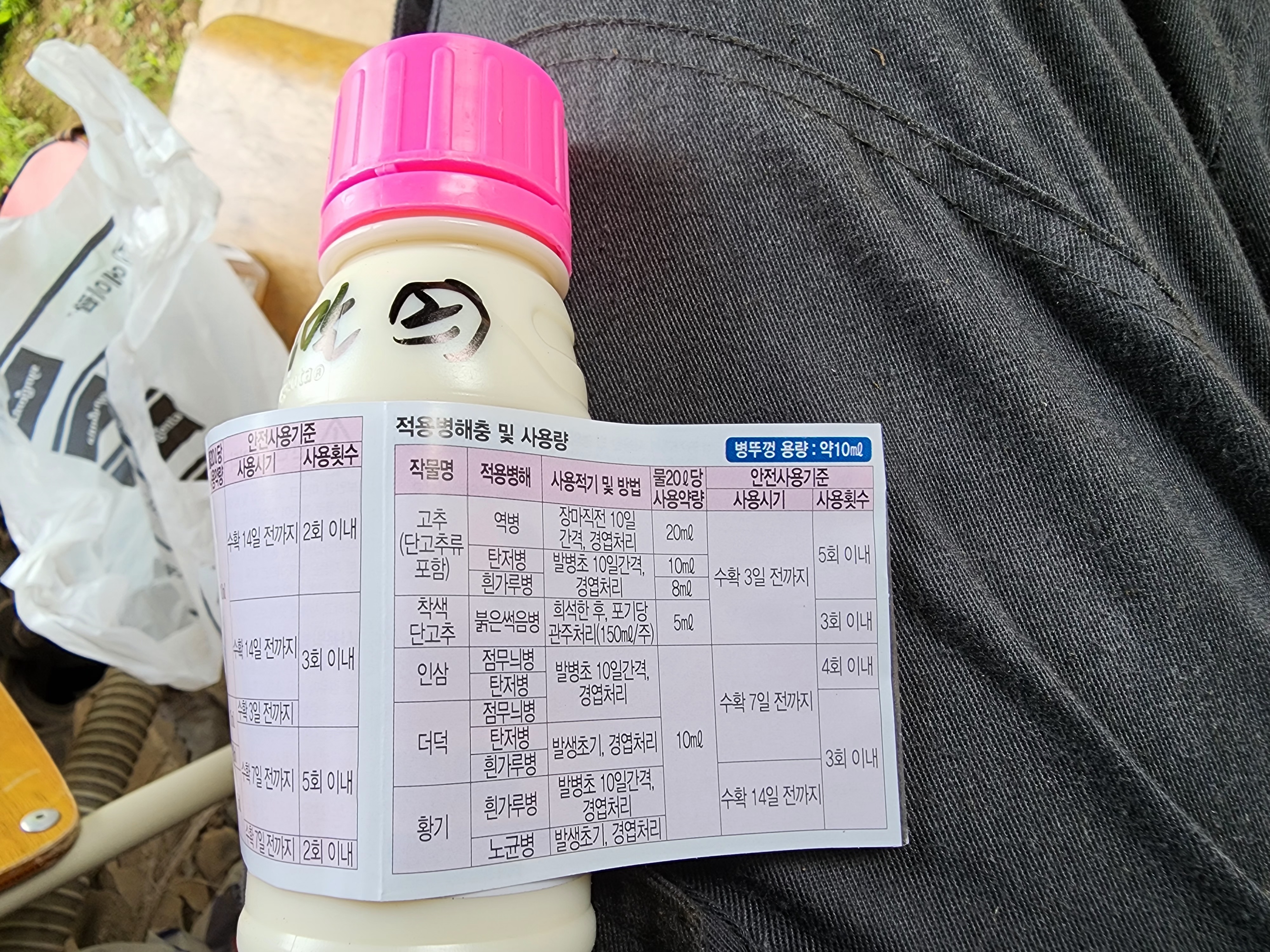 230818(1회),230910(2회)-고추,배추,무살포 230828-고추,배추 농약살포 (1)차트라-고추:세균점10.갈색점무늬병10g,수확3전일3회이내10간 -배추:무름병.노균병10.밑둥썩음병10g,수확3전일4회이내10간 -무:무름병10g,수확14전일3회이내10간격 ...