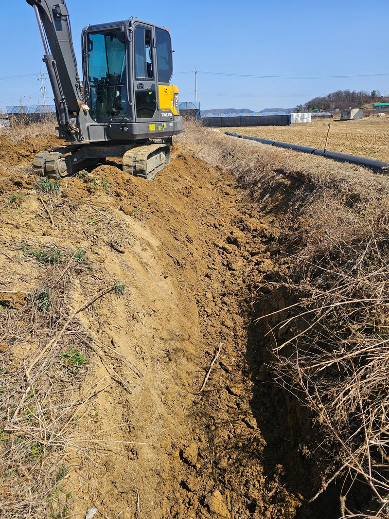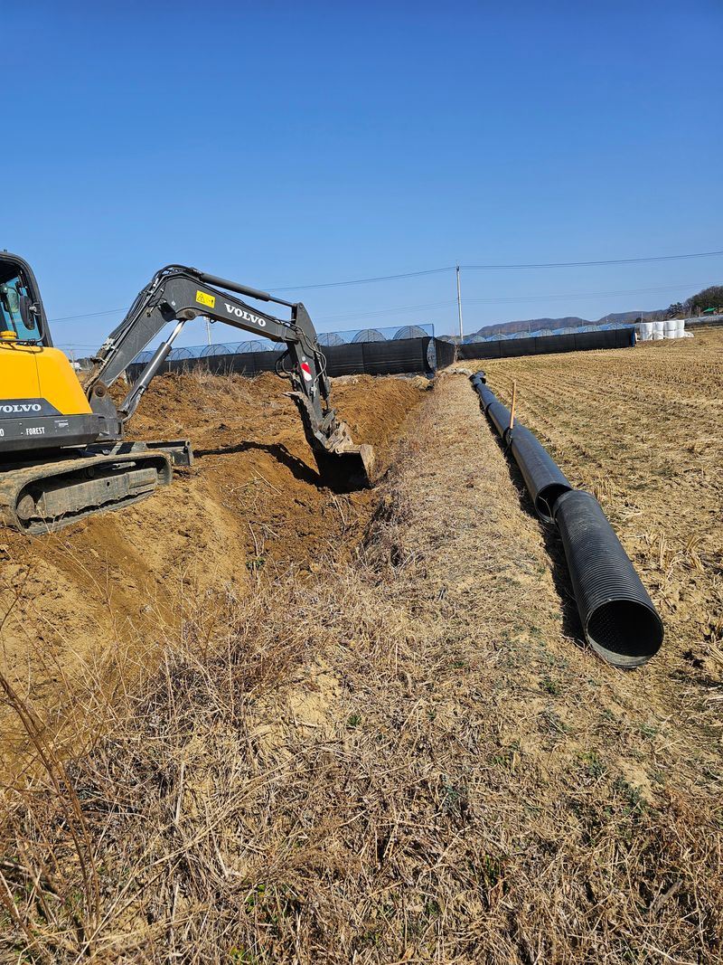 포도밭 외부 배수 설치 및 굴삭기 작업