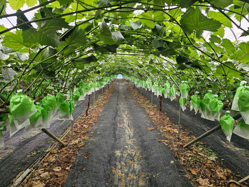 포도 살균제 작업 봉지씌우기완료 8줄작업완료