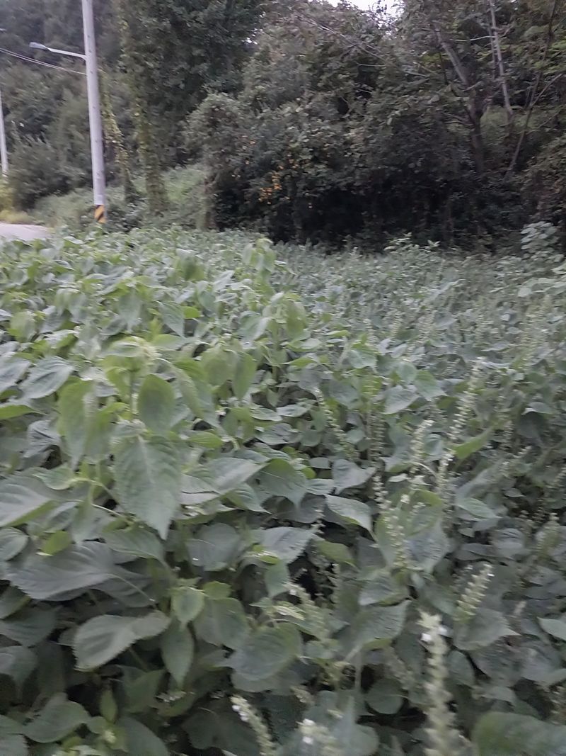 가로등 불빛아래 들깨 밤잠을 안자서 키만 계속 자라고 있읍니다 ,멀리있는 들깨 꽃이 피고 들깨 향기가 진하게 납니다