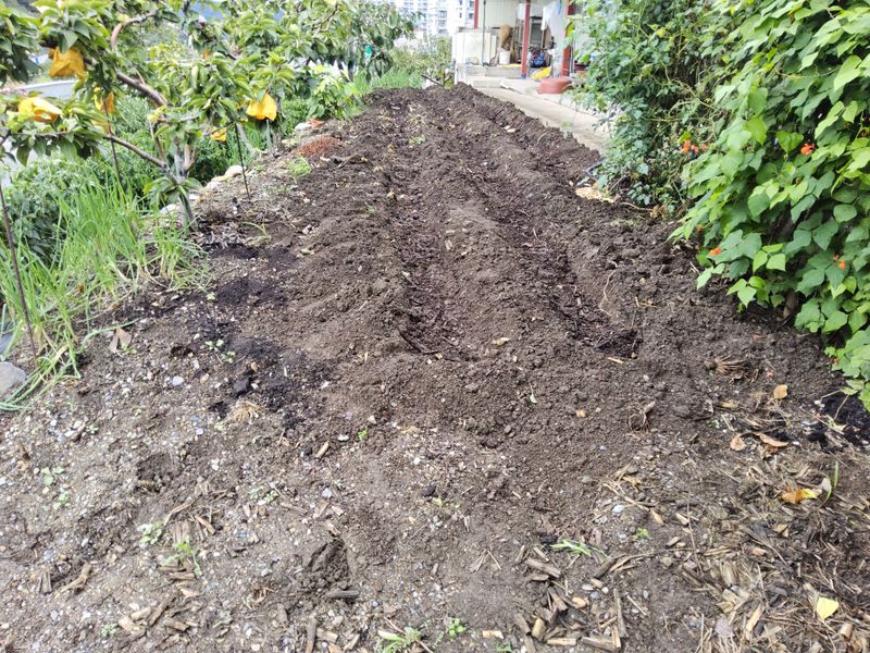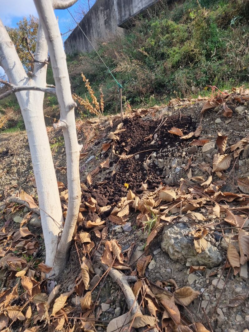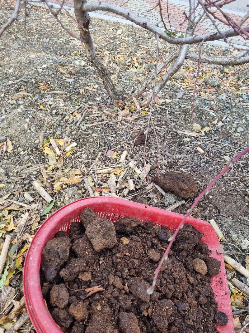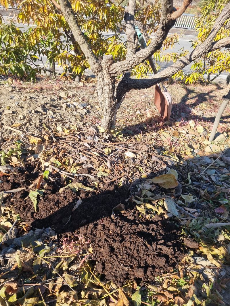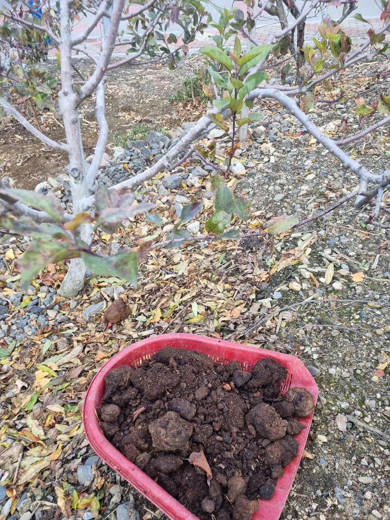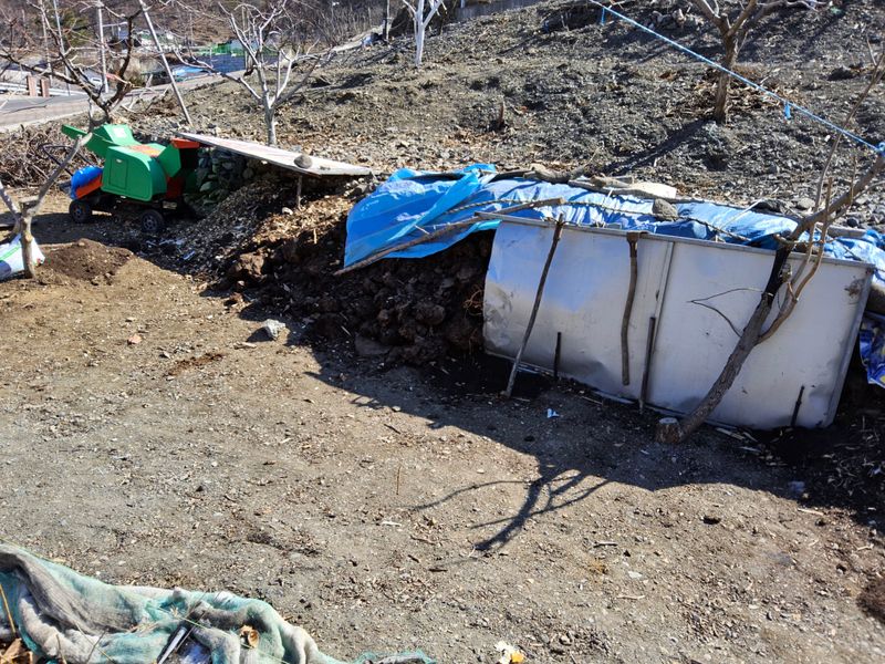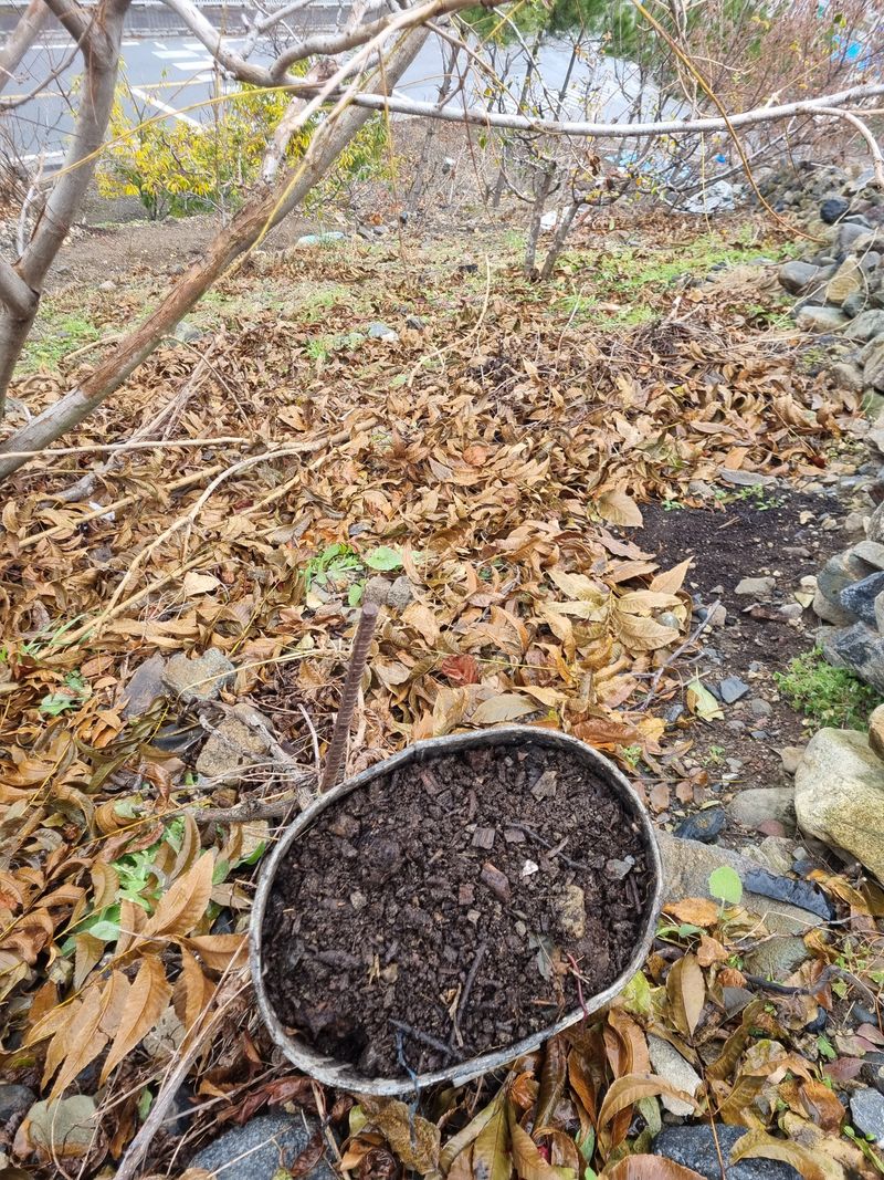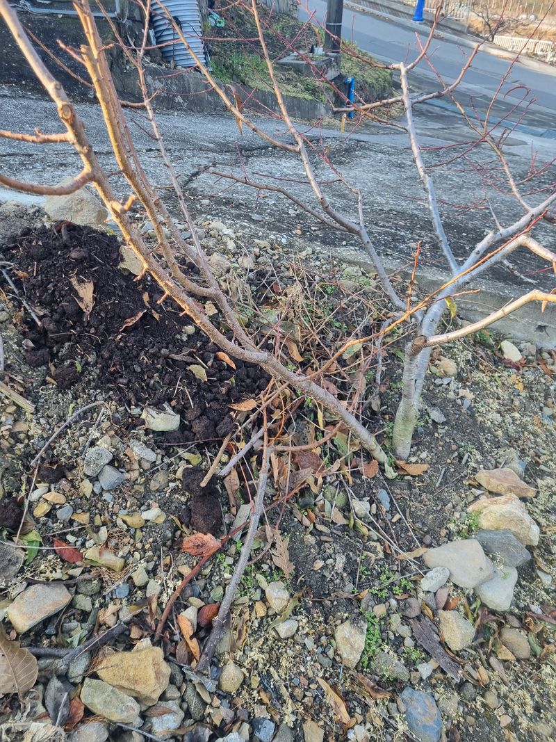 안녕하세요 오늘은 저희집앞 도로건너변 가드레인옆으로 과수나무에다 복숭아1주.대추나무3주 저희퇴비보관장소 바닥까지 글거모아 서 도합 4주에다 완숙퇴비주는 작업 끝내게 되었음니다.
