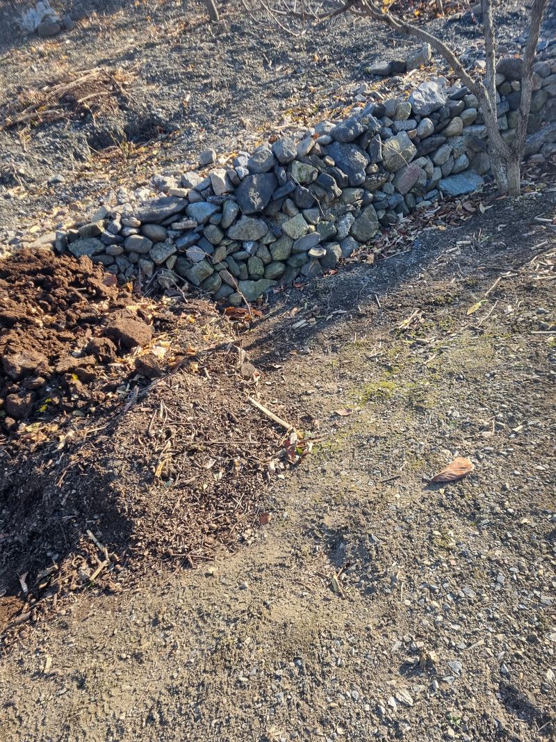 안녕하세요. 오늘은 저희집앞 도로건너변 감나무와 감나무사이에 기존저희 퇴비저장소에 곁드려서 확장 작업과기존 도로에서 저희퇴비 저장소 까지의 진입 도로 작업은 내일로 미루겠어요.