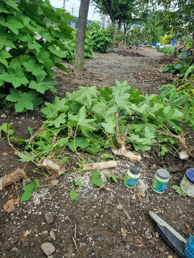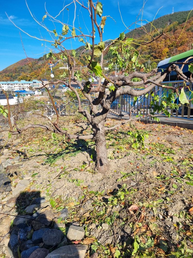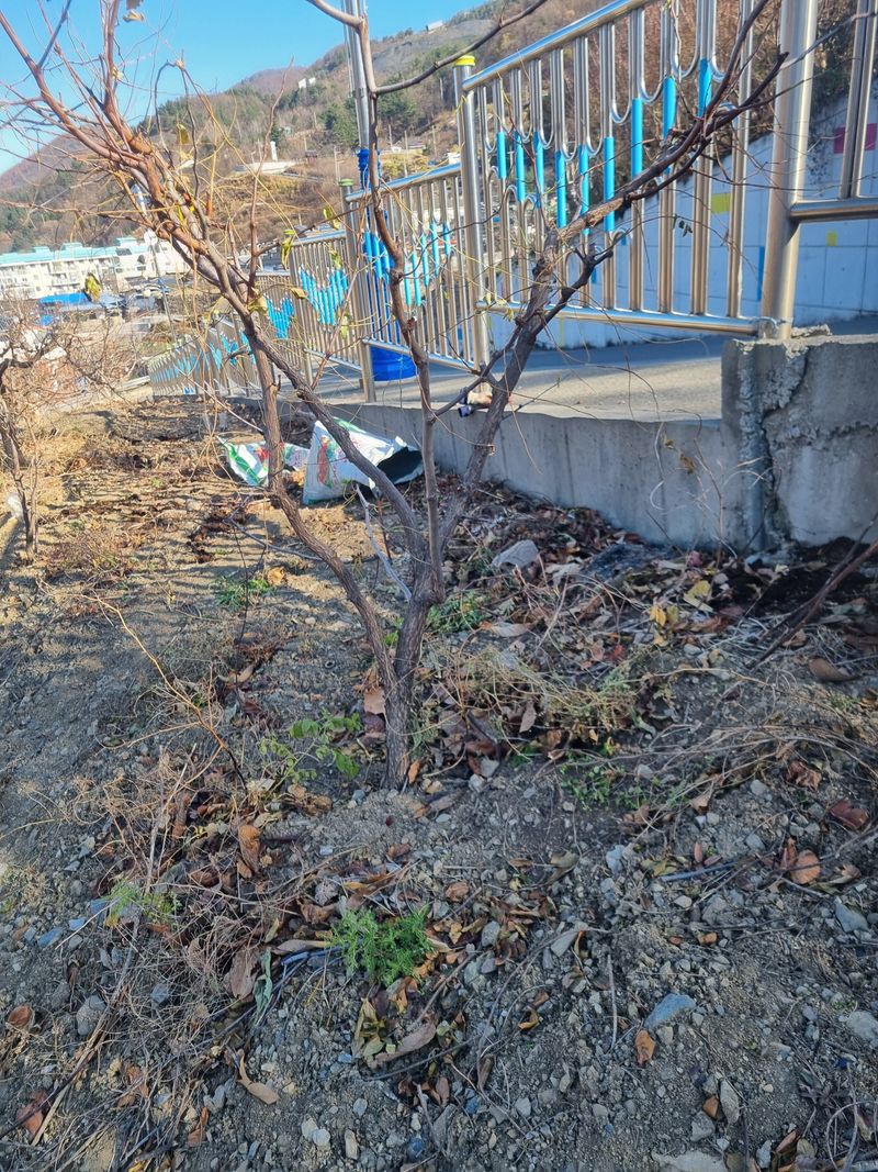 안녕하세요. 오늘은 저희집앞 도로건너 울타리형의 가드레인밖에 저희대왕감 흑감 야오끼감 3주 식재된 주위 잡초 뿌리뽑기하였으며 3주 감나무 가지치기함쎄 하였어요. 또한 옆자리에 첨부사진처럼 무장 바나무3주 시재됨에 여기도 곁드려서 잡초 뿌리뽑기 작업후 뿌리를 한...
