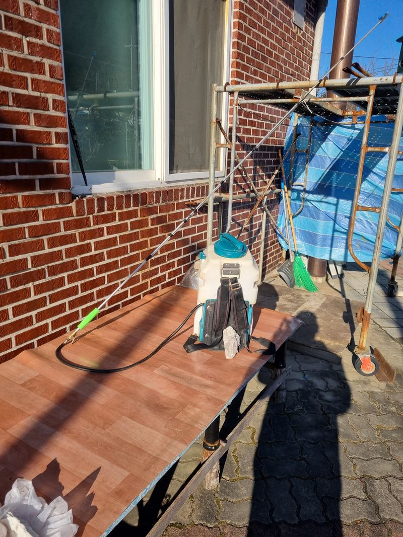 안녕하세요. 오늘은 저희집 창고옆 기존밤나무 자세히 살펴 보아도 이상무 궁리 끝에 창고 지붕에올라가서 살펴보니 이곳엔 왕진드기가 한곳에 모여있지 아니하고 가지 끝에 분산 되어 있어요. 저희 별별궁리끝에 옛 수동 분무대를 이용 기존 분무 대에 추가로 연결하여 밤나무 가...