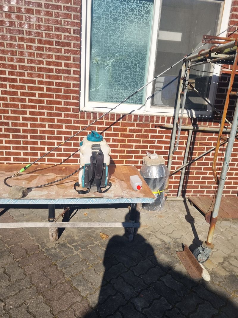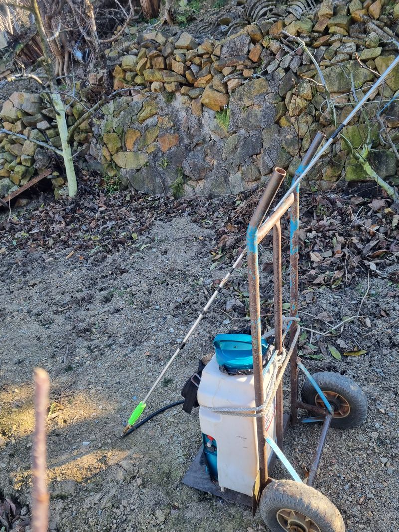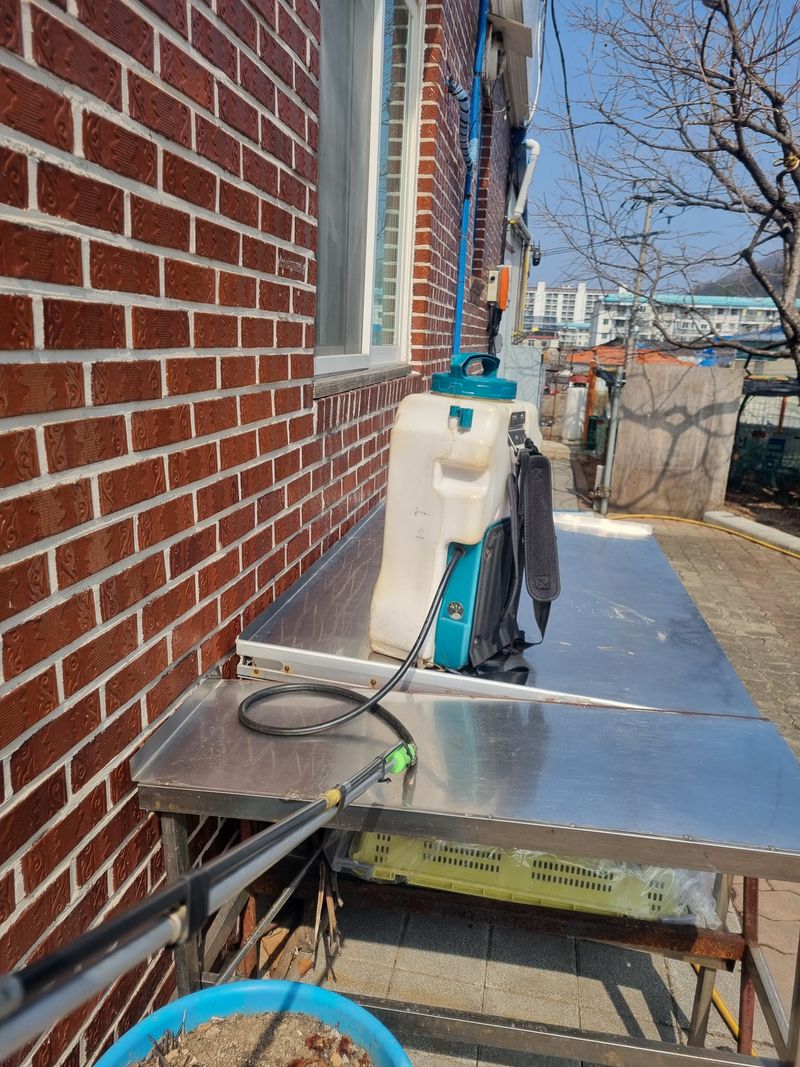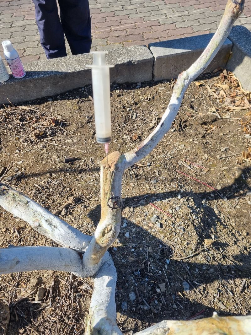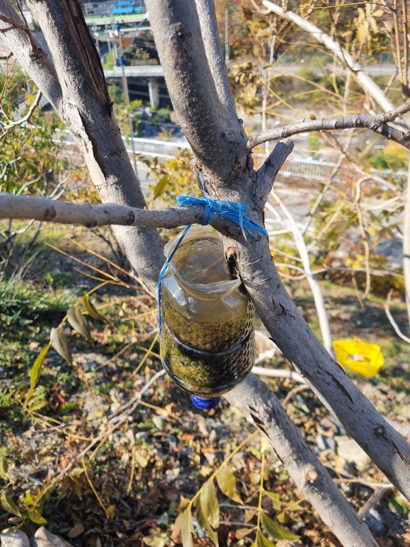 안녕하세요 오늘은 예보상 비내림이지만 맑은 햇살이 순간적으로나마 비춰줌니다. 하기에 저희계획대로 간단히 첨부사진처럼 호두나무 2주 감나무2주. 동계방제 하기로 살충제바람탄. 석회유황합제.동계유. 전착제 이렇게 희석후 분무 살포 작업 하였음니다 한편 더 살포 할 뜻은...